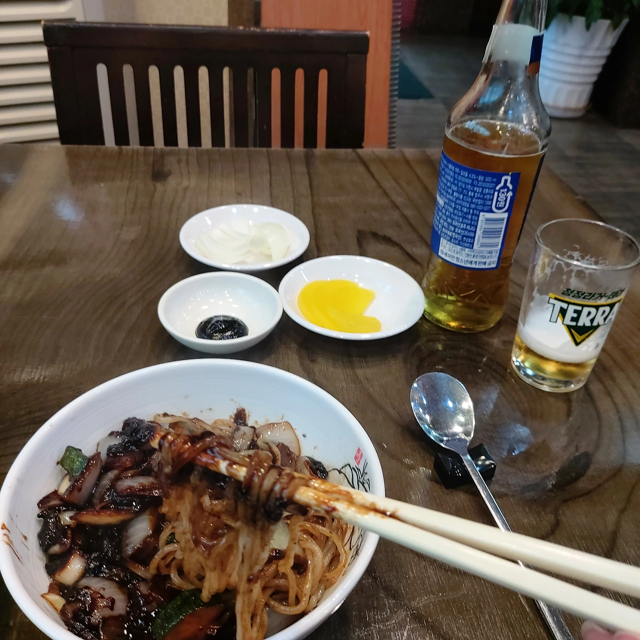 짜장면과 군만두와 맥주.