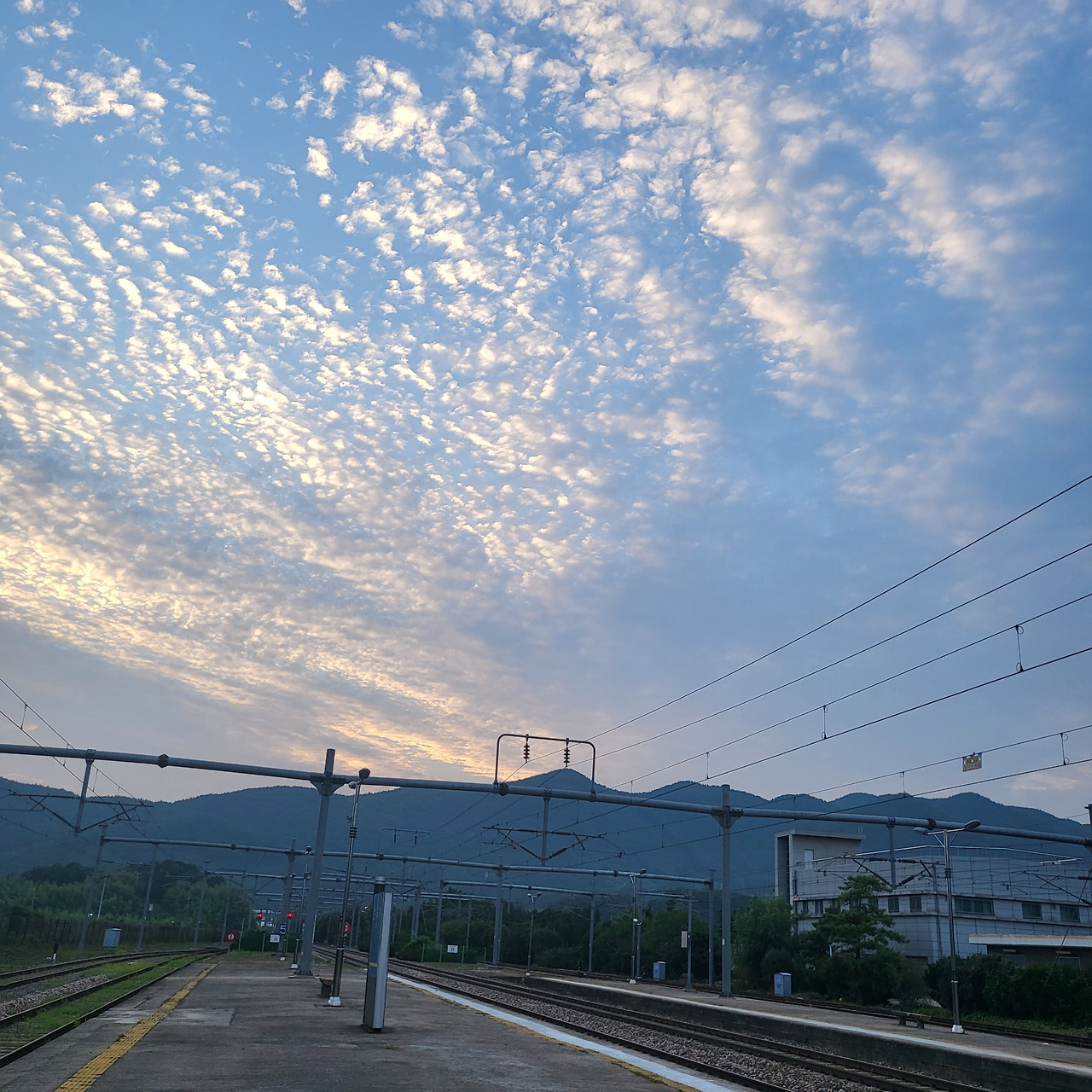 더위가 가신지는 오래이고 살짝 몸에 서늘함이 깃들 즈음 다방을 나와 역사로 들어가 플랫폼으로 향한다. 어느덧 햇살도 한 풀 숨이 죽고 흰 구름 사이로 붉은 기운이 어려있다.