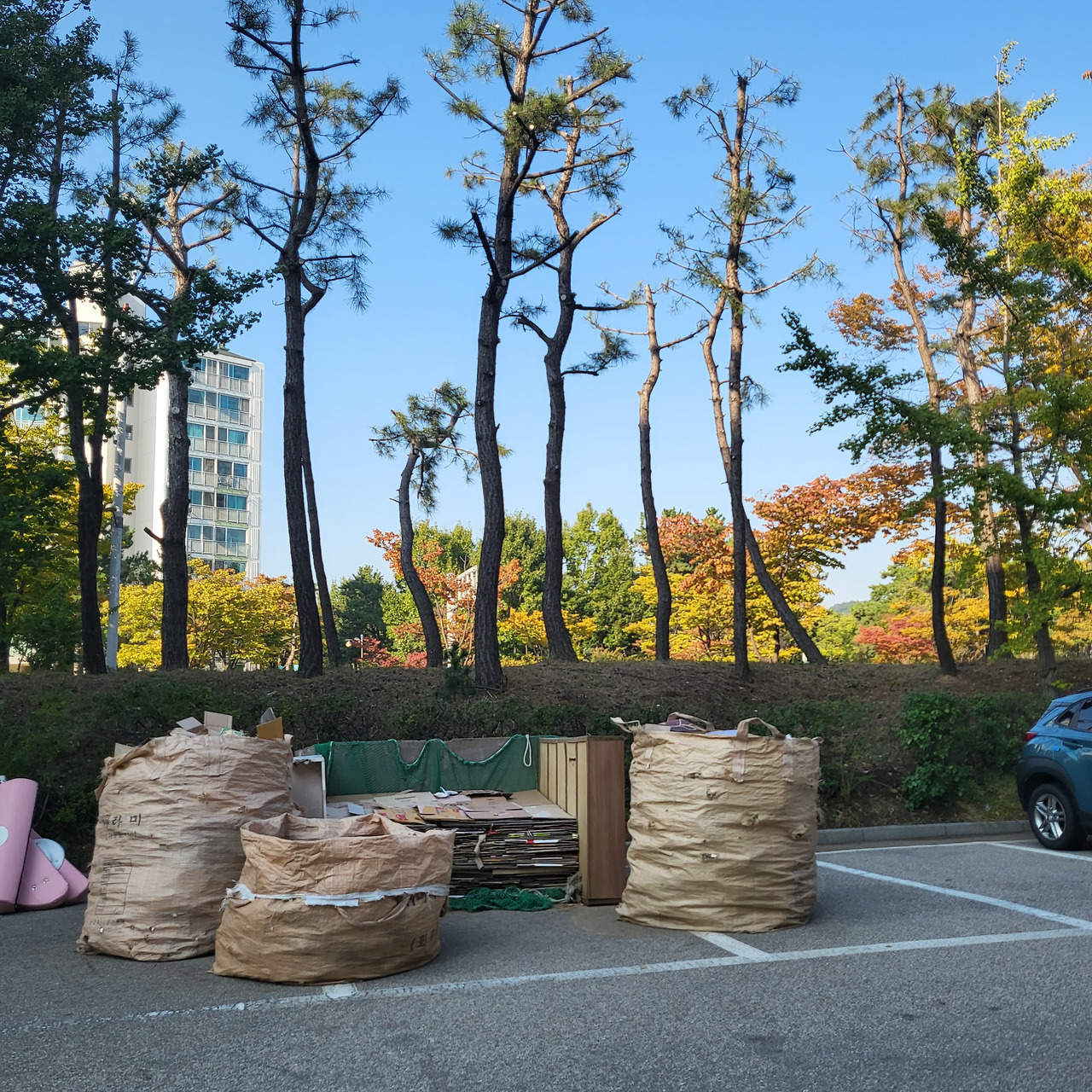 재활용쓰레기장 뒤로 보이는 가을은 그저 아름답다