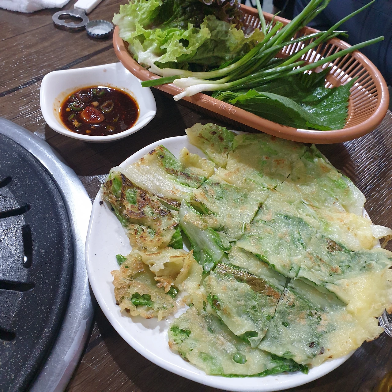 배추전이 떡하니 사이드로 나오고 싱싱한 야채와 깔끔한 찬들, 막창을 찍어 먹는 장이 너무 맛있어 된장을 안 시킬 수가 없었고, 된장과 함께 나온 맛깔난 김치에 밥을 아니 먹을 수가 없다.