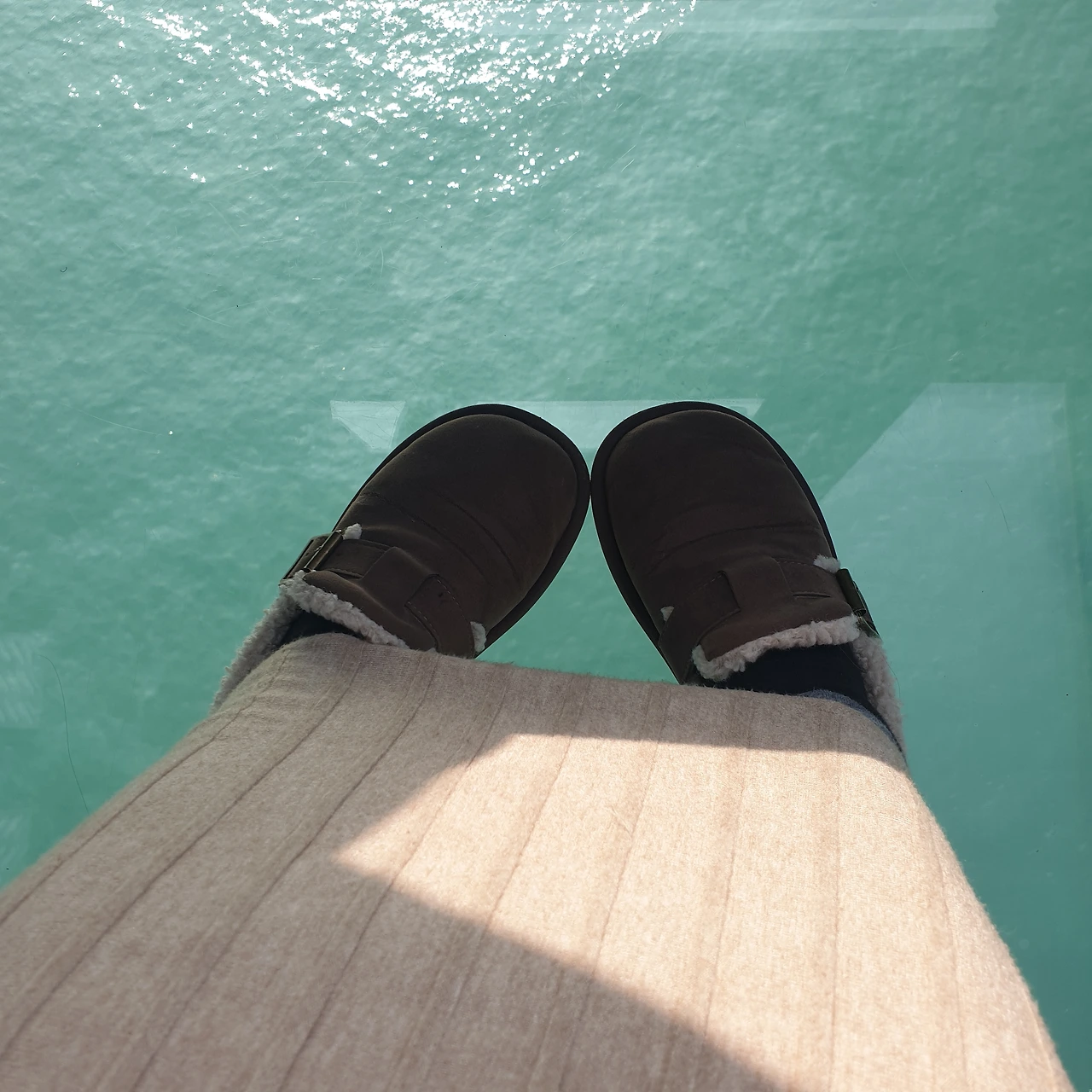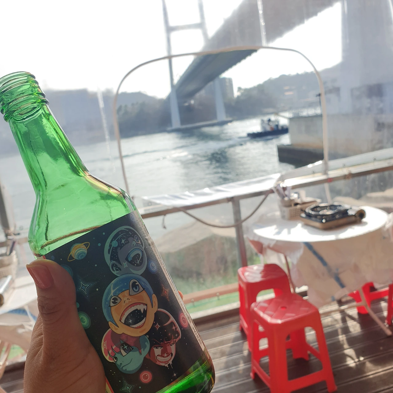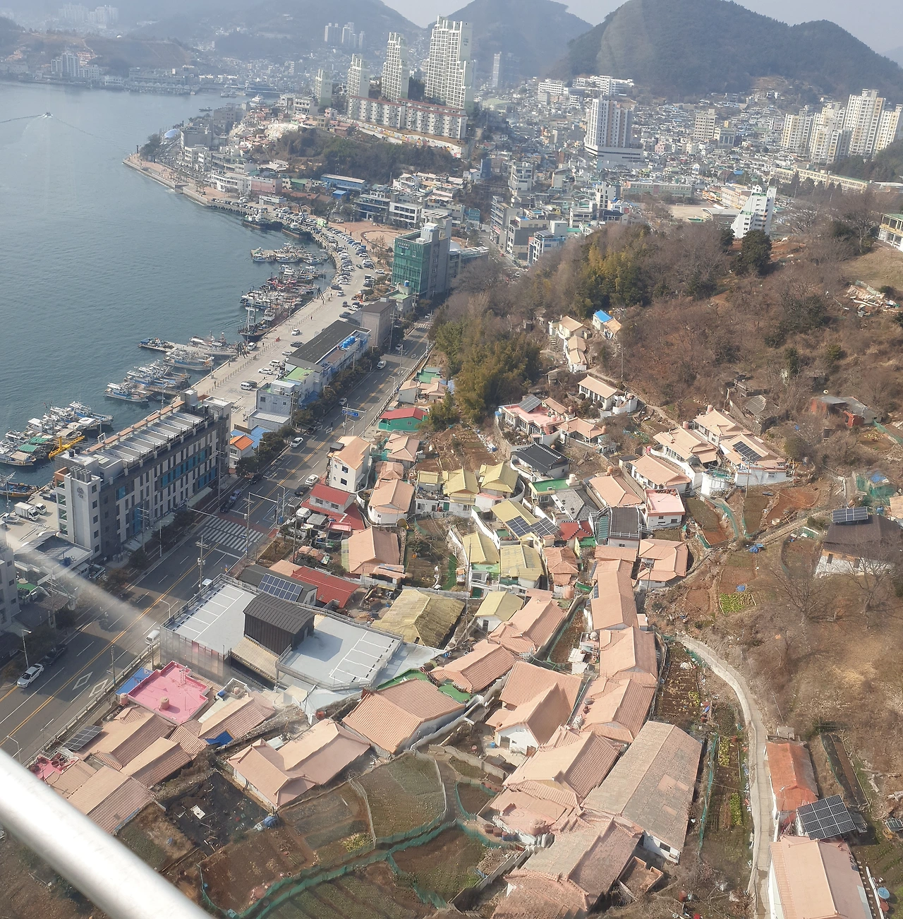 출발 전 낮술 한 잔을 하기 위해 여수 낭만포차 거리를 목적지로 정하고 돌산공원 앞에 내렸다. 보통은 관광지의 케이블카를 타는 일은 드믄데, 새벽 여정의 피로와 목적지 앞이 도착지라는 아주 적절한 이유로 케이블카를 타기로 했다. 일반과 크리스털 케이블카는 5천 원 차이인데, 그만큼의 무엇이 있겠지 하는 마음에 만원의 사치를 부려본다. 크리스털 케이블카는 바닥이 투명한 유리였는데 케이블카가 바다로 들어서자 투명한 바닥이 꽤나 스릴이 있어 짧은 거리지만 오랜만에 아이들처럼 신나게 즐기고는 자산공원에 도착했다.