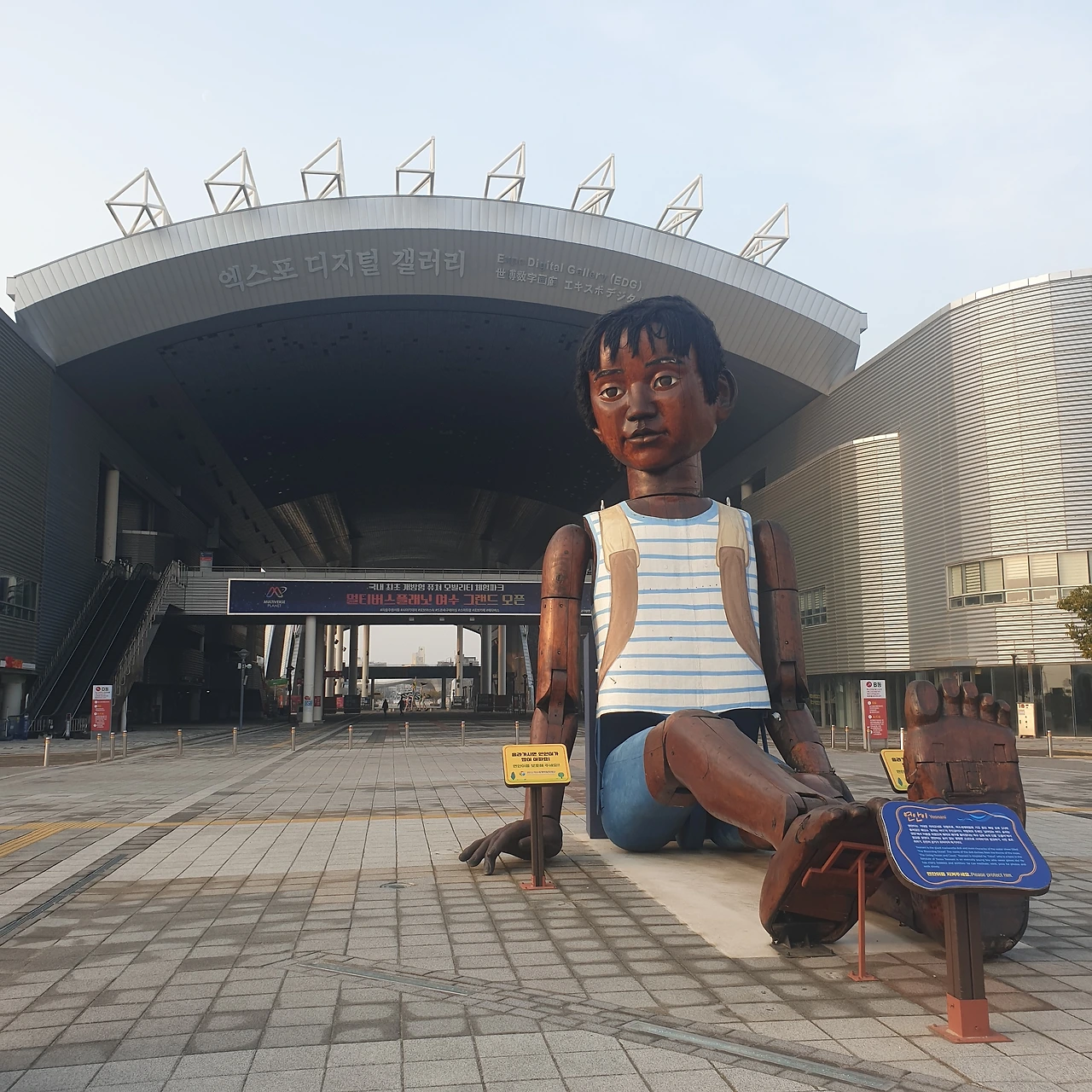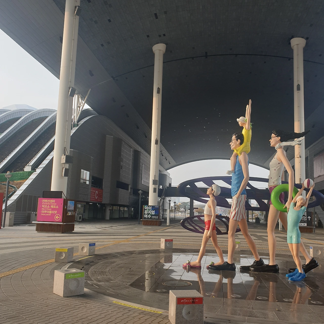 커다란 조형물들이 놓인 여수엑스포장을 가로질러 검색해 둔 식당으로 향했다.