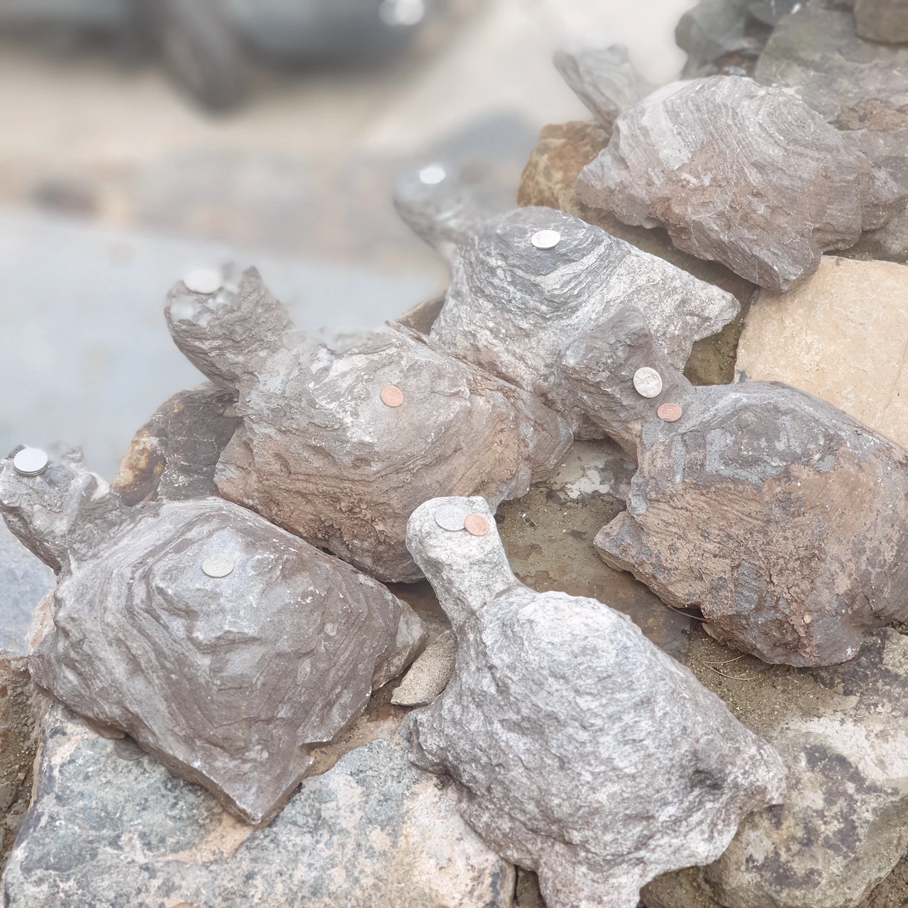 거북이와 관련된 전설이 있는 곳이라 그런지 곳곳에 거북이 석상들이 자리 잡고 있고, 거북이 목마다 색색의 염주가 걸려있거나 머리마다 동전 한두 개씩을 이고 있다.