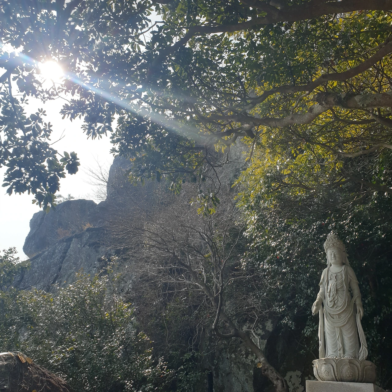 관음전과 바다를 바라보며 서있는 관음상 앞에서 고요해 보이는 먼바다를 한참 바라보다 그저 산책하듯 주변을 천천히 걷는다. 돌과 건축물과 바다가 조화롭게 아름다운 풍경이다. 해를 향해 있다는 의미의 사찰명처럼 해돋이 명소도 있다. 이곳에서 해돋이를 볼 기회가 이생에 있을까? 생의 어느 순간도 장담할 수 없는 것이 인생이라 생각하기에, 답을 미룬다.