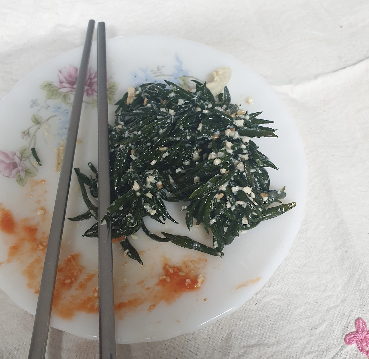 음식은 왜 먹으면 먹을수록 더 먹고 싶은지, 가지면 가질수록 더 가지고 싶은 ‘욕망’의 대표선수이기 때문일까. 손을 뻗으면 가질 수 있는 거리의 하얀 쌀밥의 유혹을 뿌리치고 톳나물을 조금 덜어 후식으로 먹는다.