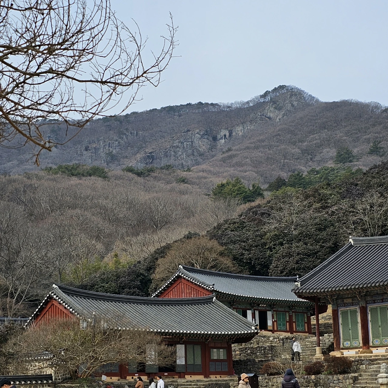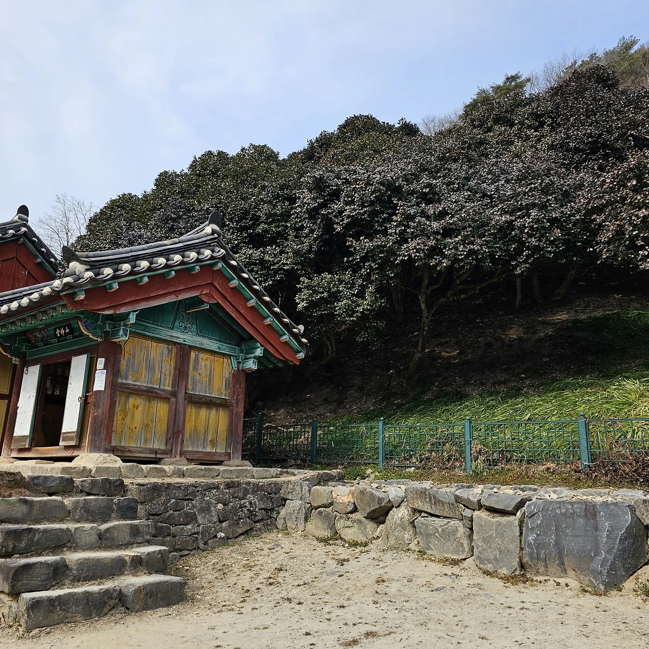 대웅전 앞으로는 고려시대 세워졌다는 원래는 10층이었다는 6층 석탑이 지키듯 서있고 대웅전 뒤로는 천연기념물로 지정된 드넓은 동백숲이 사찰을 감싸 안듯 펼쳐져 있다. 대웅전 오른편으로 돌아 산신각으로 앞으로 가 세월을 가늠할 수 없으리 만치 큰 동백나무 군락을 들여다보고 있으면 저 숲 너머 마치 다른 차원의 세계로 흘러 들어갈 수 있을 듯한 감각의 시차가 느껴진다.