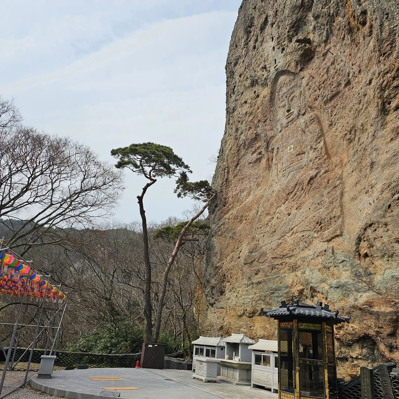 조금 힘들다 싶을 즈음 도솔암이 나왔다. 암자라고 하지만 대웅보전과 나한전, 삼신각, 내원궁까지 있는 규모가 큰 사찰이다. 대웅보전 앞 빼곡히 늘어선 색색의 연등을 지나 올라가니 내원궁으로 가는 길가 마애불상으로 가는 길이 나온다.