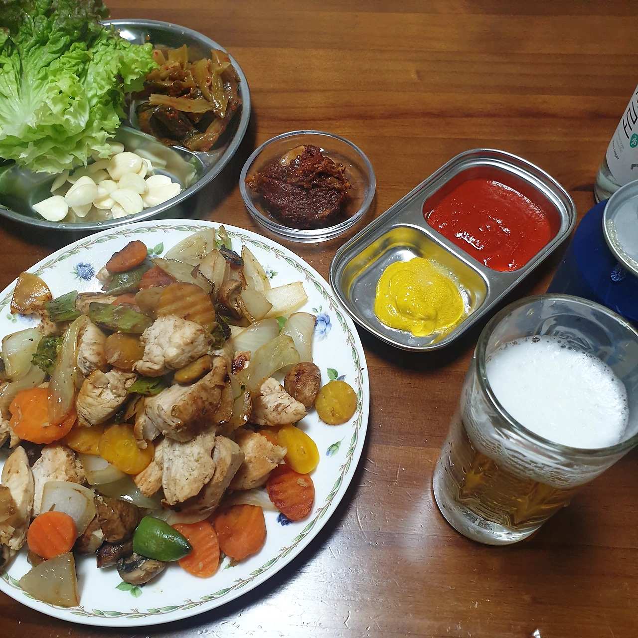 약간의 타협으로 계란의 미래버전인 닭가슴살과 야채를 구워 간이 치맥을 즐겼다.