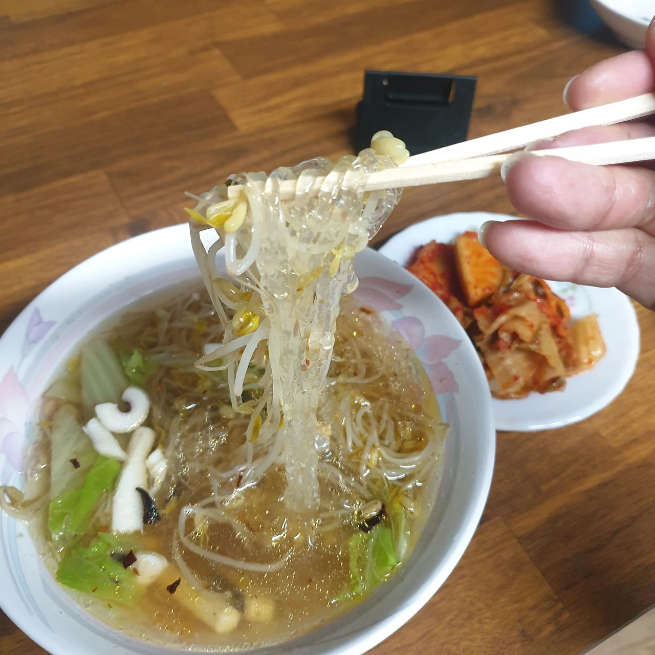 다음날도, 딸이 남긴 반찬을 처리하느라 냉장고에 있던 게살죽을 반그릇 정도 먹긴 했지만 전날 만들고 남은 계란만두와 천사채당면쌀국수로 착실한 다이어터로서의 하루를 마감했다.