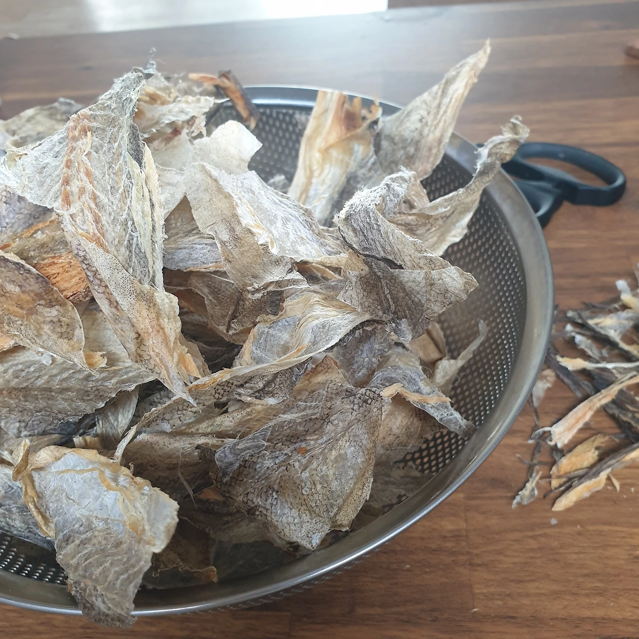 김치찌개에 천사채당면을 넣어 후루루룩 한 그릇 해치우고, 혹여나 입이 심심할까 강원도 여행에서 사 온 황태껍질을 꺼내 손질하고 씻어 에어프라이기에 바삭하게 굽는다.