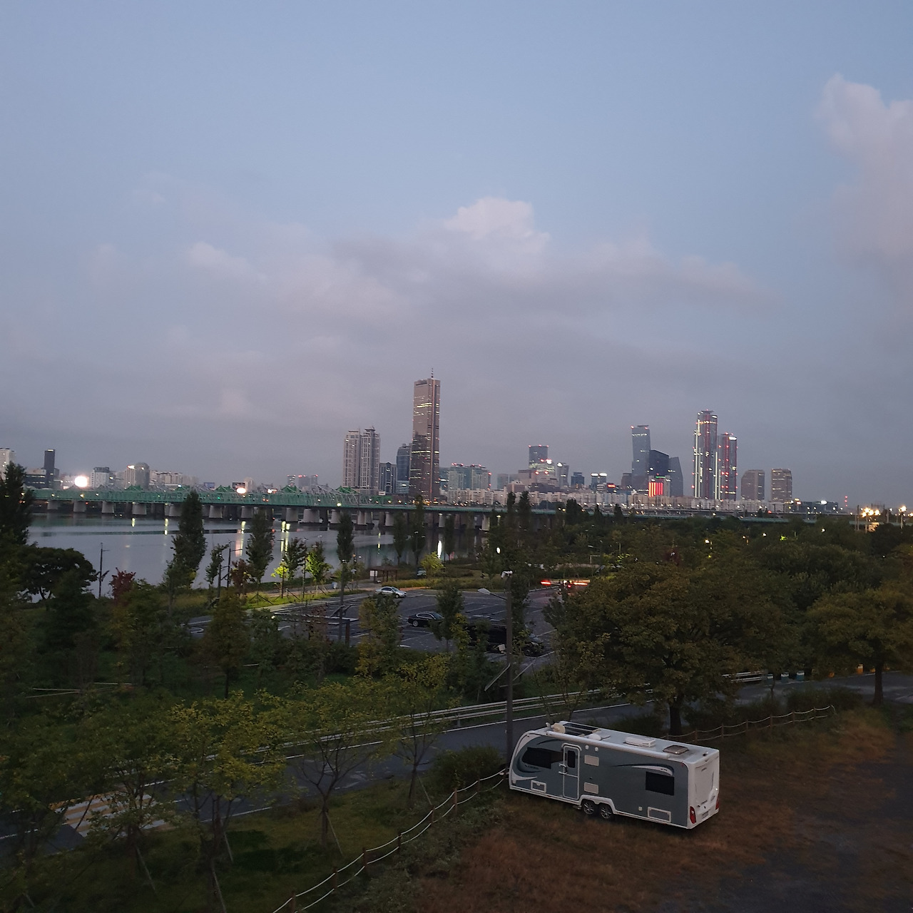 숙소에서 나와 한강 방향을 대충 가늠하고 몇 걸음 걸으니 할머님들이 몇 분 보인다. 경험상 이젠 지도는 필요 없다. 할머니 꽁무니만 쫓아가면 된다. 보통 이 시간에 나오시는 어르신들은 강변으로 운동하러 가시기 때문이다. 역시나 무사히 이촌한강공원에 안착한다.