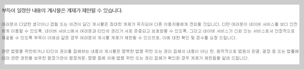 이 밖에도 성적 표현이나 상거래가 불법인 품목들에 대해서도 상세하게 정리가 되어 있어. 그만큼 생각보다 네이버가 자세히 이런 것은 삼가해주세요. 라고 설명서를 정리한 것이지.