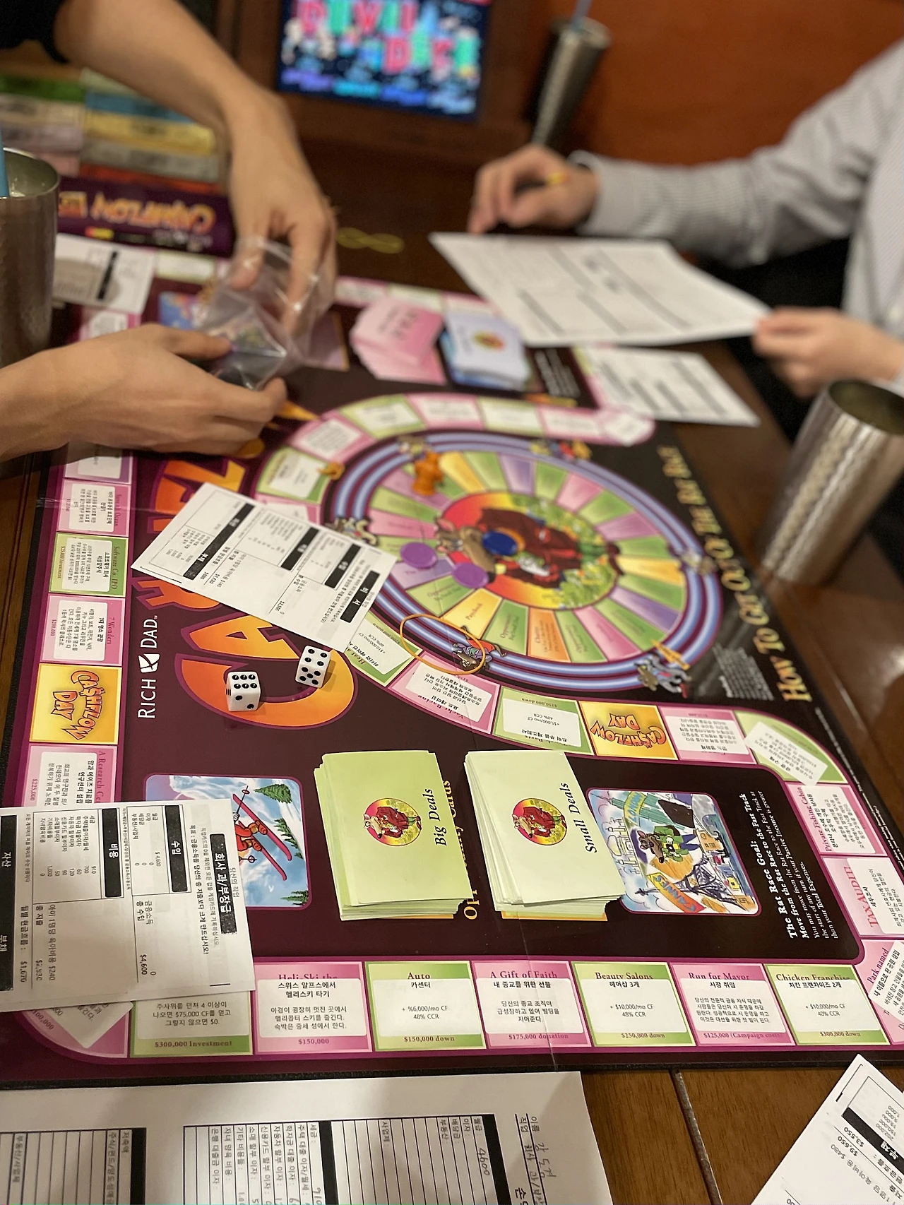 주사위로 특정 지점을 지날 때마다 받게 되는 매달의 월급을 위해 누군가는 빠르게 달리는 데 집중하기도 했는데요. 그에 비해 저는 초반부터 공격적으로 레버리지를 활용해 투자를 운용해 보았습니다. 주식, 채권, 스타트업 투자 등 다양한 기회요인 중 저는 대부분 부동산 위주로 투자해 보았습니다. 아파트를 구매하기 위해 은행으로부터 융자를 받아야 하고, 다달이 지불해야 하는 대출이자가 늘어가기도 한다는 점에서 진짜 찐 현실처럼 느껴지기도 하더군요.
