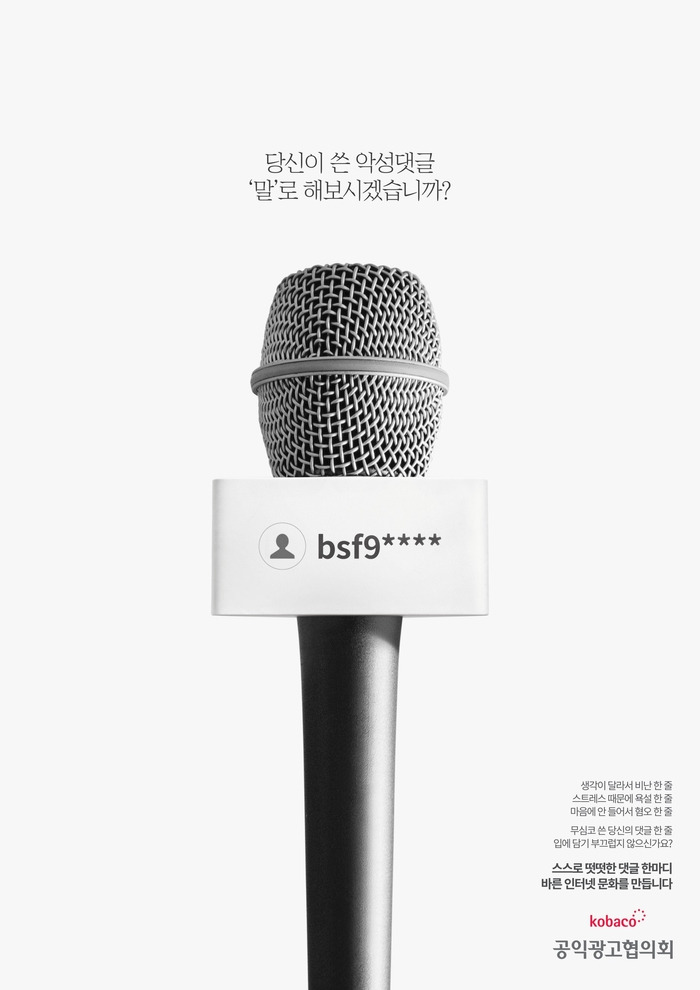 다음은 공익광고제 수상작들이다. 간단한 오브제와 여백, 한 두 줄의 헤드 카피와 작게 쓴 바디 카피로 이루어져 있다. 습니다체의 질문형 카피도 많은 편이다. 예의 바르면서도 의무적인 느낌을 주기 때문이라고 생각한다.