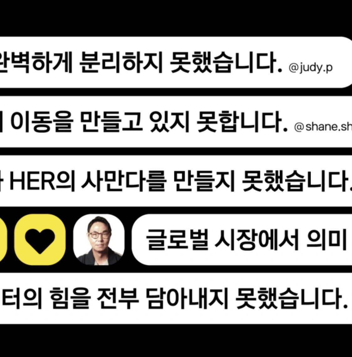 그중 가장 인상적이었던 영상의 제목은 '영화 'HER'의 사만다를 만들지 못했습니다.'였어요. 사만다는 영화 <Her>에서 주인공이 사랑에 빠지게 되는 음성 인공지능 비서의 이름인데요. 인공지능 TF부서인 카카오 브레인에서 진행한 인터뷰로, 앞으로 카카오가 만들어나갈 인공지능 비서에 대한 기대감을 잔뜩 높여주었어요.