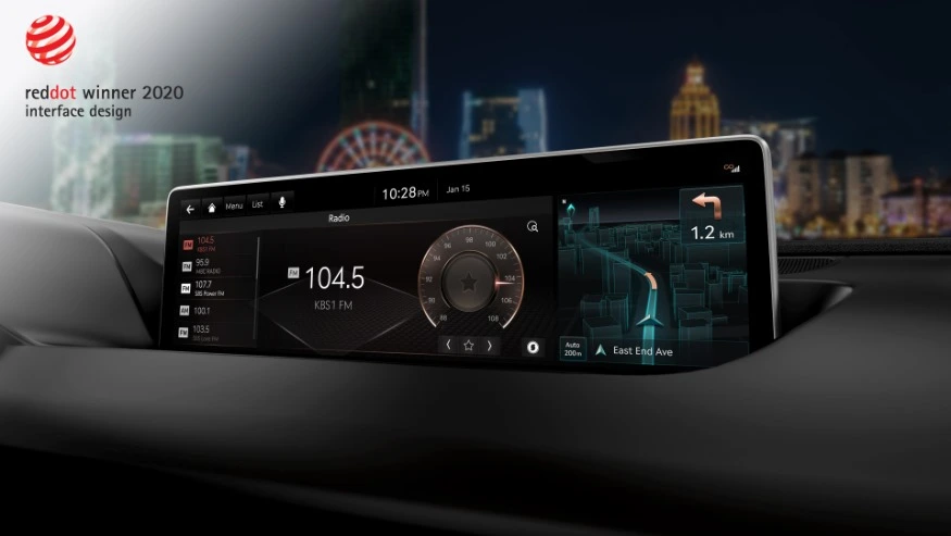 또한 제네시스의 차량 인포테인먼트 시스템으로 인터페이스 디자인 부문에서 수상했는데요. 인포테인먼트란 인포메이션(Information)과 엔터테인먼트(Entertainment)의 합성어로, 차 내에서 다양한 정보를 전달받고, 콘텐츠를 즐길 수 있도록 하는 시스템을 말해요. 자율주행이 주목을 받으면서, 인포테인먼트에 대한 관심이 높아지고 있는데요. 제네시스의 인포테인먼트는 증강현실 내비게이션, 카페이(Car+Pay) 등을 지원하며 운전자에게 최적의 시인성을 제공해 높은 평가를 받았어요.