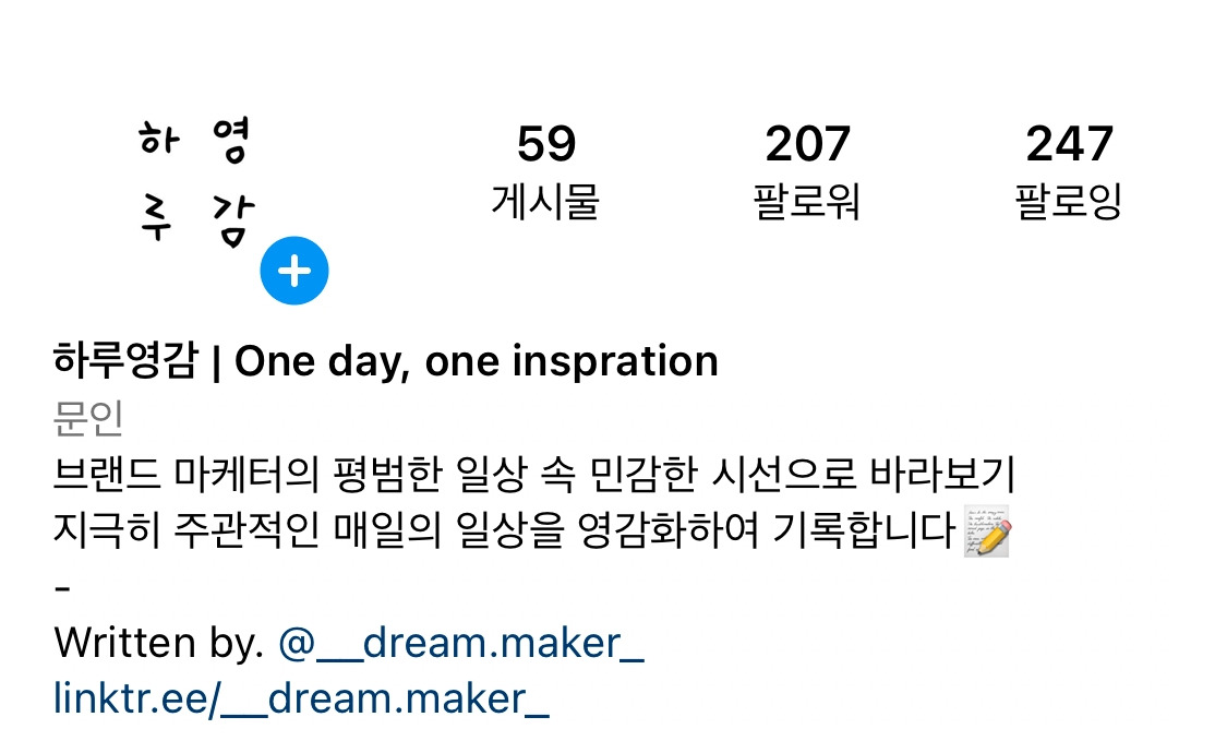 그리고 인스타그램에 영감계정(@haru.0gam_)을 만들어서 제가 일상생활 속에서 보고 느낀 것들, 떠오르는 생각을 적고 정리해보며, 저에 대해 탐구했어요. 이렇게 '셀프 디깅'하는 일을 많이 하면서 나중엔 '프립'에서 제가 호스트가 되어 셀프 디깅에 대해 사람들과 이야기를 나누는 '피카 타임'을 진행해보기도 했죠.