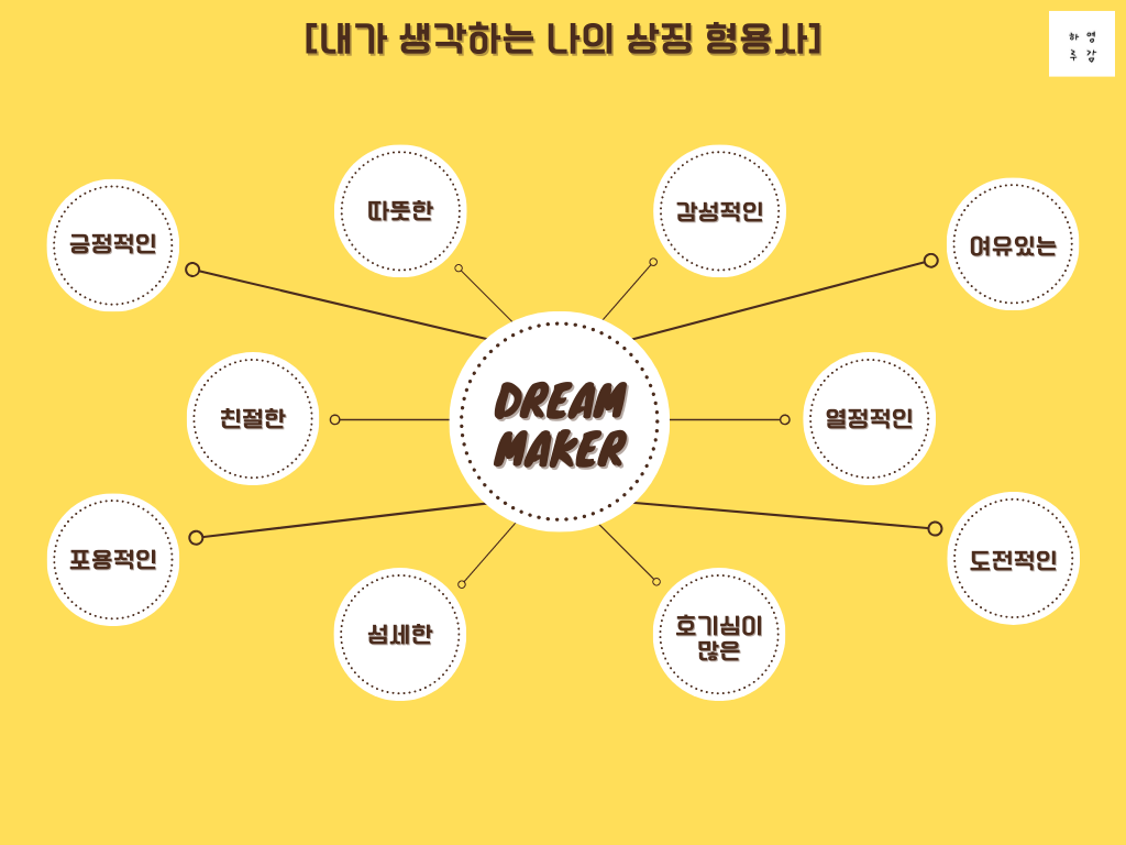 우선 저의 '상징 형용사'를 뽑아봤어요. '호기심이 많은', '도전적인', '감성적인'처럼 저를 상징할 수 있는 형용사를 찾은 거예요. 그리고 인스타그램 스토리를 통해서 다른 사람들의 의견도 들어봤어요. 내가 생각하는 나의 상징 형용사와 다른 사람들이 생각하는 상징 형용사의 공통점과 차이점을 비교해보았죠.