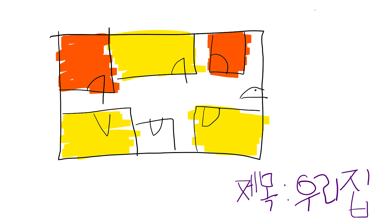 그러다보니 하늘에서 본 조감도식 도면은 내가 생각하는 집의 전형이었다. 그래서 유치원 미술시간에 선생님이 “집을 그려보세요!”라고 하면 그 흔히 그려지는 삼각형과 사각형이 합쳐진 집 모양 대신에 도면처럼 생긴(다만 어린아이의 손으로 삐뚤빼뚤한) 집을 그리곤 했다.