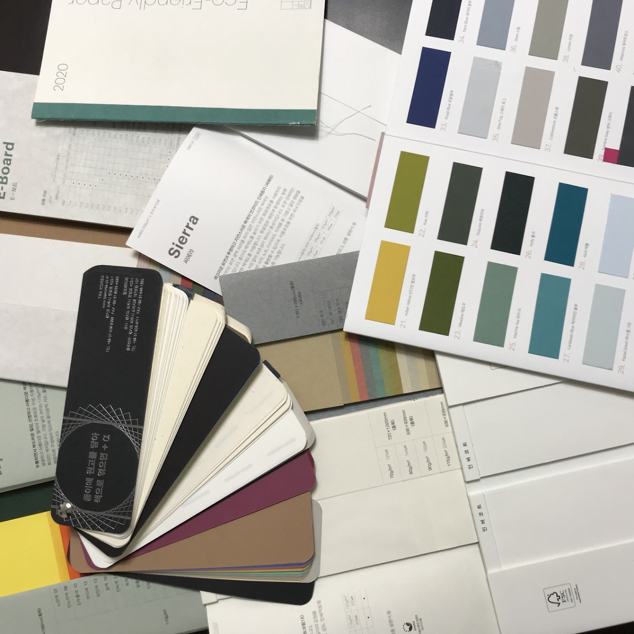 종이에 워낙 관심이 많다 보니 좋은 종이를 고르는 데 신경을 많이 써요. 종이 샘플을 보러 대구에서 서울로 인쇄소도 자주 오곤 하는데요. 종이만 딱 보고 좋은지 아닌지 고른다기보다는 제품을 기획하며 이미지를 떠올리고, 그에 맞는 종이를 구상해요. 재질이나 색상은 어땠으면 하는지, 후가공은 어떻게 할지. 그러다 보면 종이마다 제약이 생겨요. 금박을 했을 때 예쁘지 않은 종이도 있고, 접지가 안 되는 종이도 있고. 제약에 걸린 종이를 제외한 뒤 직접 보고 이미지에 맞는 종이를 골라요.