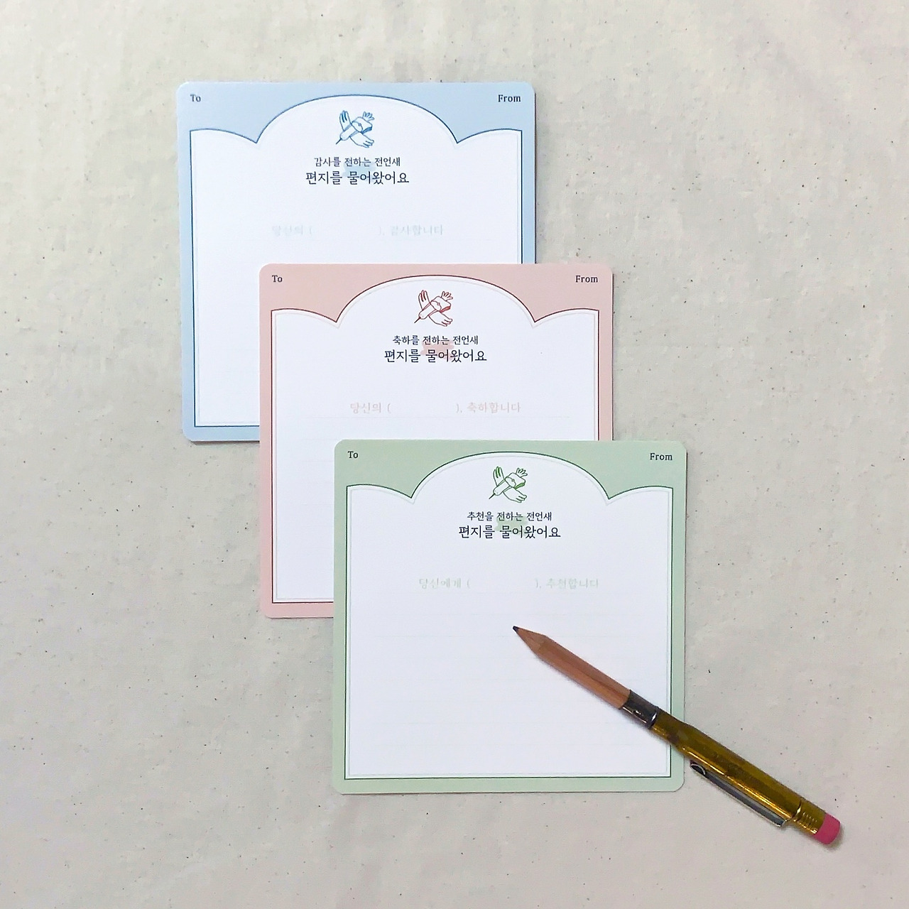 레터버드는 말 그대로 '편지새'라는 뜻인데요. (로고의 편지새는 직접 그리신 건가요?) 네, 맞아요. (웃음) 레터버드는 편지를 매개로 하는 다양한 경험을 제공하는 브랜드예요. 편지 제품을 기획하는 것뿐만 아니라 편지를 매개로 모임이나 수업 등의 프로그램도 기획하고 있어요. 현재 두 가지 제품에서 출발해 조금씩 제품 라인을 늘려가려고 하는데요. 단순히 디자인이 예쁜 게 아니라 기능을 담은 편지, 놀이처럼 즐길 수 있는 편지 제품을 만드는 게 목표예요.