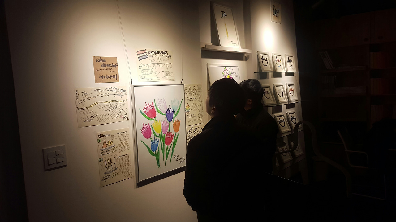 제가 튤립을 발견한, 수도 없이 많은 why를 썼던 그 낙서를 가지고 전시회를 열었어요. 한 명이라도 와서 본다면 이 낙서를 왜 했고, 어떤 걸 전달하고 싶었는지 얘기하려고요. 신기하게도 이 일을 시작으로 계속 전시를 하고 작품을 팔고, 강연도 하게 됐어요.