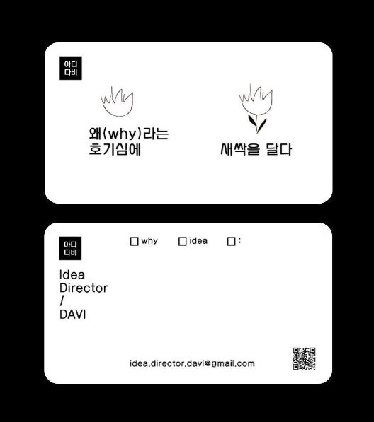 그 다음으로 생각한 게 디자이너, 또 다음은 광고 기획자인데요. 저는 이렇게 한 가지 분야에만 아이디어를 내는 게 아니라 분야에 상관없이 아이디어를 내는 일이 하고 싶더라고요. 광고에는 크리에이티브 디렉터라는 직책이 있잖아요. 거기서 '디렉터'라는 말을 따와서 '아이디어'를 붙였어요. 아이디어 디렉터라는 직업으로 명함도 만들었죠. 왜, 명함은 누구나 만들 수 있잖아요. (웃음) 그러고 아이디어 디렉터로 뭘 할지 생각했어요.