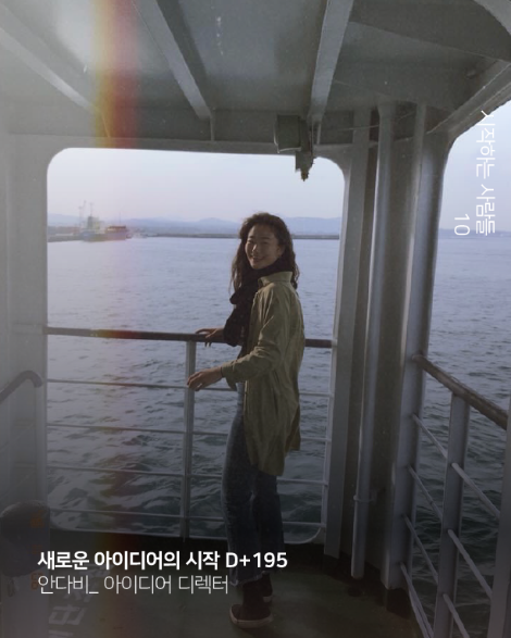 5년 동안은 제가 하고 싶은 이야기를 담은 작품을 전시하고, 강연을 했어요. 누군가는 작가라고 부르기도 하고, 동기부여 강연가라고 부르기도 했고요. 그러다가 아이디어 컨설팅 회사에 입사해서 일을 하게 됐어요. 제가 원하던 대로 분야에 상관없이 아이디어를 내는 일이었어요. 이를테면 기업에서 신제품을 만들 때 같이 아이디어를 내서 제품을 개발할 수 있도록 돕기도 하고요. 그렇게 1년을 일하다가 지금 직장으로 오게 됐어요. 이제는 기업 컨설팅이 아니라 소비자를 직접 만나는 일을 하고 싶었거든요. 제가 내는 아이디어에 사람들이 어떻게 반응하는지 보고, 바로 적용할 수 있으니까.
