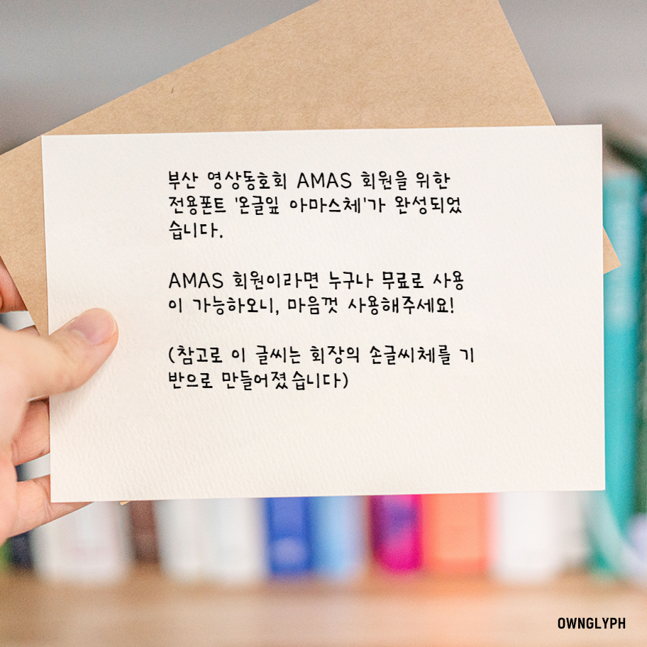 그리고, AMAS만의 폰트를 만들었어요. 제 손글씨를 바탕으로 제작한 건데요. 동호회 회원들이라면 누구나 무료로 사용할 수 있게 했어요. 올해 목표는 이 로고와 폰트를 디자인 특허로 등록하는 거예요.