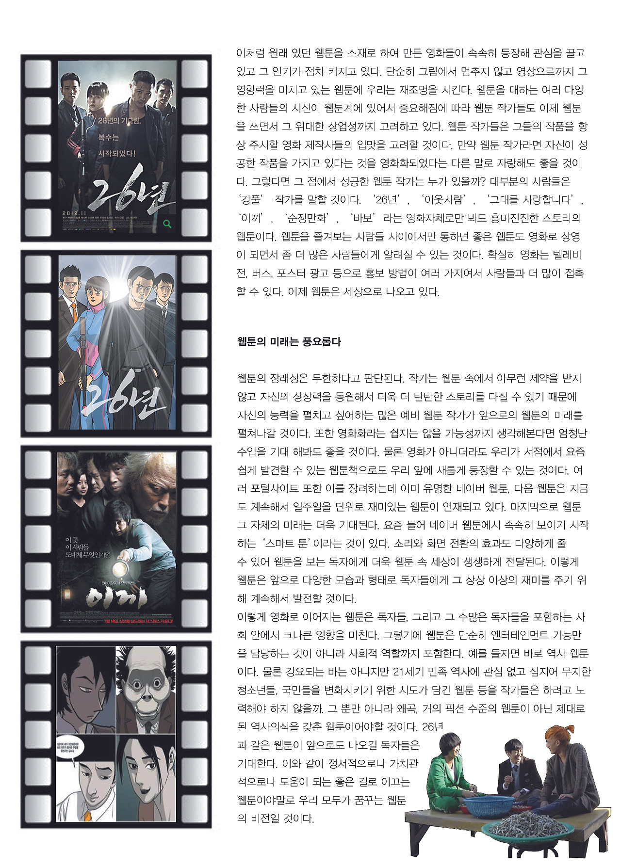 모든 일이 끝난 뒤 나는 디자인이 하고 싶어졌다. 이 동아리와 관련해 했던 모든 일 중에 가장 좋았던 건 밥도 거르고 밤도 새우면서 다루었던 포토샵 작업이었다. 잡지 에디터에서 시작해 디자이너로 꿈이 발전했다. 그러나 불행히도 나는 디자인과에 진학하지 못했고, 그것과는 전혀 상관없어 보이는 국문과에 가고 만다. (투비 컨티뉴드)