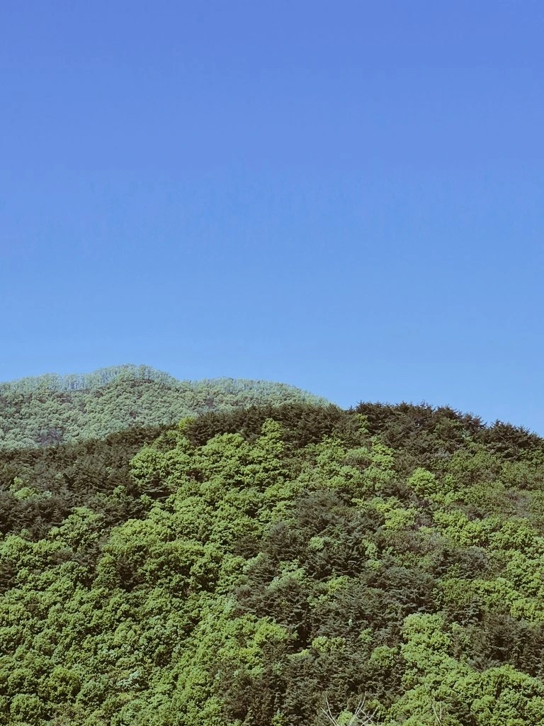 오늘 드라이브하는데 숲이 정말 아름답더라. 어떻게 이렇게 제각각 다른 초록색일까. 도로엔 사람도 없고 새소리와 바람소리만 들려. 나무 사이사이로 햇살이 쏟아져. 빛으로 가득해. 축축했던 마음을 바싹 말려줘. 고요한 이 순간, 오롯이 혼자.