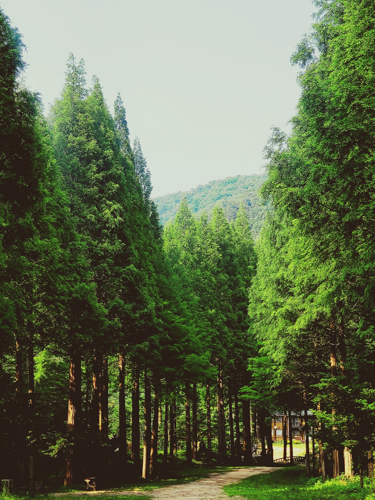 온빛자연휴양림은 2년에 다녀왔는데 온통 초록인 데다 사람이 거의 없어서 오래오래 머물다 왔던 곳이다. 입장료도 없고 특별히 관리를 열심히 하는 것 같지 않았다. 그래서 자연 그대로의 모습이라 더 좋았던 곳이었다. 이제는 드라마촬영지로 알려지고 인스타그램에도 자주 노출되다 보니 주말에는 줄을 서서 사진을 찍는 곳이 되었다고 한다. 오늘은 평일이니 주말보다 낫겠지라는 마음으로 갔다. 전보다 사람들이 있었지만 여전히 한갓지다. 조용히 산책하는 사람들 몇몇이 보였다. 오랜만에 다시 간 온빛은 여전히 아름다웠다. 메타세쿼이아나무는 더 많이 자랐다.