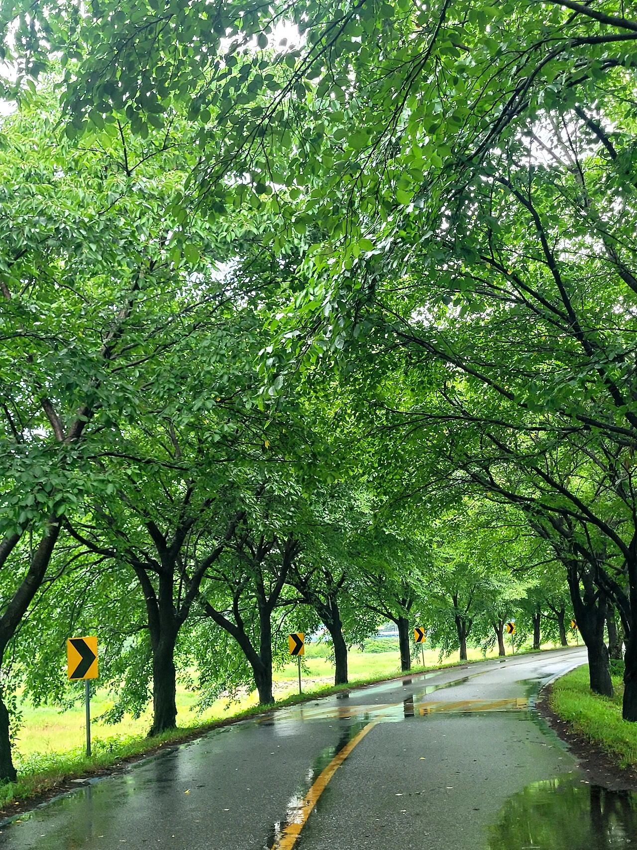 집으로 돌아가는 길은 주변이 숲과 천변이라 드라이브하기에 좋다. 시원한 차 안에서 비를 머금은 숲을 바라보며 달리는 시간도 산책 못지않게 좋았다. 차분하고 고요한 일요일 오후가 그렇게 흘러갔다. 고요한 풍경처럼 마음도 고요하면 좋으련만 마음은 어쩌자고 이리도 어지러운지.