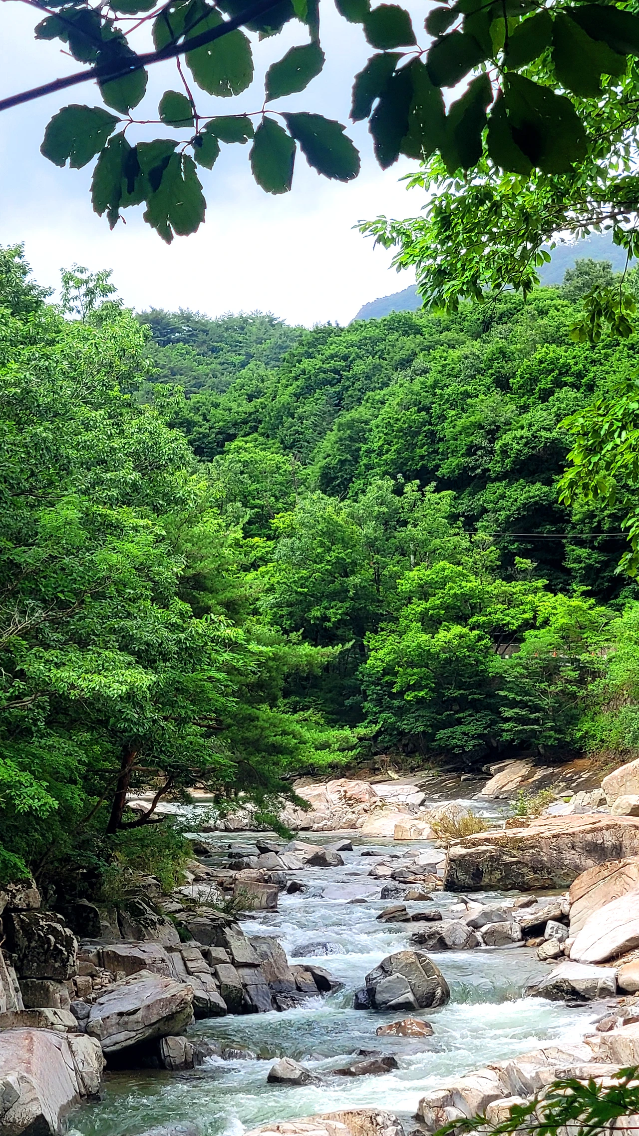 집으로 돌아가는 길에 덕유산 구천동으로 돌아서 갔다. 구천동길은 전국 아름다운 길 중 하나라 봄에는 벚꽃길로, 여름엔 싱그러운 녹음으로, 가을에는 단풍으로, 겨울에는 설산으로 유명한 길이다. 벚꽃길은 매번 지고 난 후에만 봐서 늘 아쉬운 길이기도 한데 비가 그친 이후라 더 선명한 녹음의 아름다운 덕유산 자락을 달리는 기분이 정말 최고다. 왜 아름다운 길인지 새삼스레 다시 한번 느꼈다. 초록은 정말 아름답구나. 숲을 왜 치유의 공간이라고 하는지 또 한 번 느끼면 중간중간 쉼터에 내려 구천동 계곡을, 덕유산을, 아름다운 길을 보고 또 보았다.