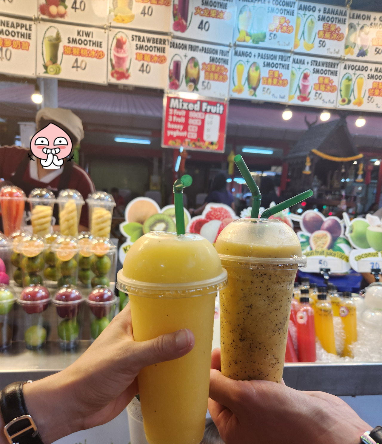 콩은 상대적으로 선선한 밤에 나와 신났는지, 처음 먹어본 스무디의 맛에 신났는지 보도블럭이 끝날 때마다 점프 점프를 외치며 뛰어다녔고, 그런 녀석을 데리고 걸어 다니자니 보통 노동이 아니었지만 여행 온 느낌을 내기에는 참 좋은 곳이었다. 다만 노상에서 파는 제품들은 살 만한 것이 거의 없었으므로, 분위기만 즐기는 선에서 구경하고 지나가는 게 좋을 것 같다. 심지어 나이트 바자에서 산 코끼리 바지에는 주머니가 1개뿐이었던데다 한국에 와서 빨았더니 가랑이부터 차츰차츰 벌어지고 있다...!