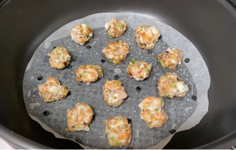 이 반죽을 동글게 혹은 넙적하게 모양 잡아 찜기에 올려 찌거나 에어 프라이기에 돌려 구우면 되는데, 나는 일단 모든 반죽을 찜기에 찐다. 한번 쪄서 기름칠해 구우면 겉바속촉 오징어볼이 되기 때문. 그리고 냉동 보관했다가 조리할 때도 한번 쪄냈기 때문에 안 익을 걱정 없이 빠르게 조리해 낼 수 있다.