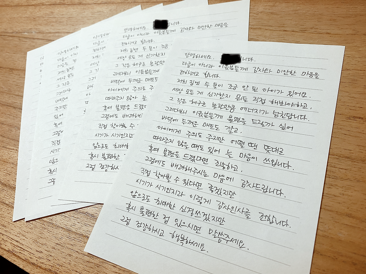 다름이 아니라 이웃분들께 감사와 미안한 마음을 전하려고 합니다.