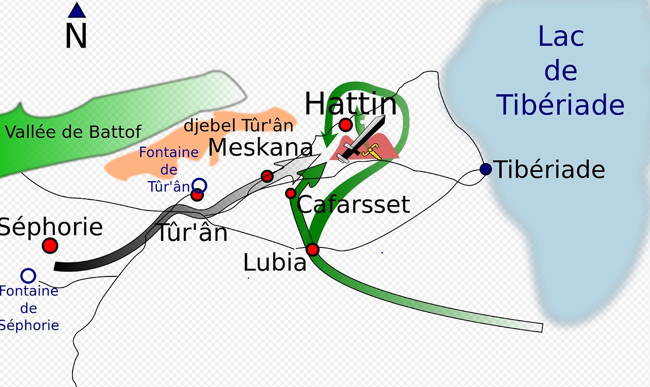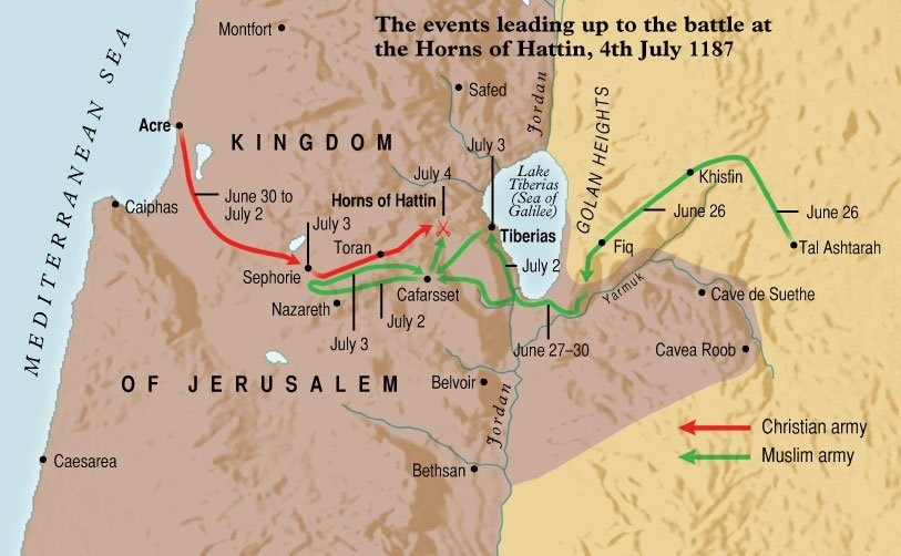 하틴 전투 당시 십자군과 이슬람군의 이동로