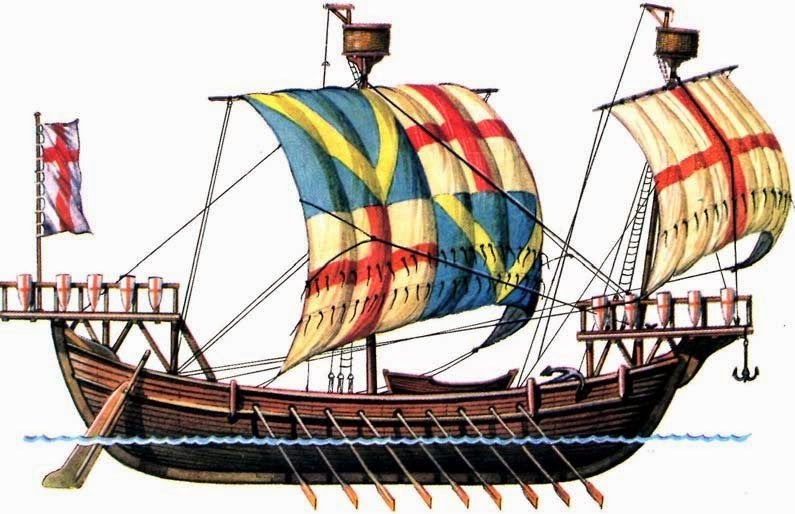 리처드의 영국군은 투트랙으로 예루살렘을 향해 진군을 시작하였는데 공성무기인 투석기, 돌포탄, 보급품을 실은 수송선단은 리처드가 베즐레에서 출발하기 전에 먼저 영국을 출발하여 스페인과 북아프리카가 가장 가까이에 있는 지브롤터 해협을 지나 프랑스 마르세유에서 도착하였고 리처드는 프랑스 남부 육상로를 이용하여 마르세유에서 수송 선단과 만난 후 이탈리아 제노바를 향해 출발하였다. 리처드는 돛과 노로 움직이는 갤리선(*첫번째 이미지 참고)을 기함으로 사용하여 거대 선단을 이끌었고 수송선(*첨부 두번째 이미지 참고)은 돛을 이용해 오직 바람의 힘으로만 움직였기 때문에 아무래도 갤리선에 비해서 속도를 느릴 수 밖 에 없었으나 거대한 공성 무기인 투석기, 돌포탄을 실어야 했기에 튼튼하면서도 내부 공간이 확보된 수송선이 요긴하게 활용되었다.