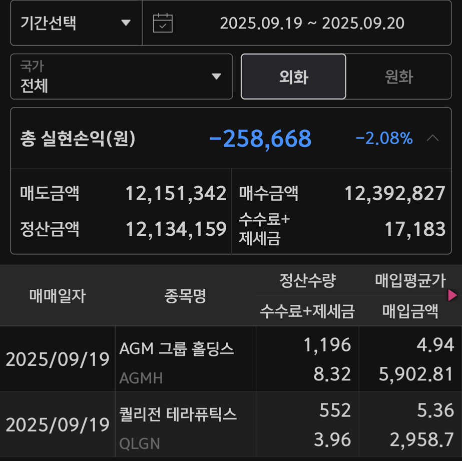 아 너무 뼈아프다. 프리장에서 10만 원을 벌고 워크숍에 집중하고 아침에 일어났다. QLGN(퀄리전 테라퓨틱스)가 엄청난 상승을 보이고 있었다. 보통 3-5분 봉 20 이평에 들어가는데, 나도 모르게(마음이 급했던 것 같다) 너무 높은 지점에서 들어가는 바람에 -20% 이상을 얻어맞아서 -40만 원의 손해를 봤다. 천천히 가야 하는데, 너무 급하게 만회를 하고 싶었던 것 같다.