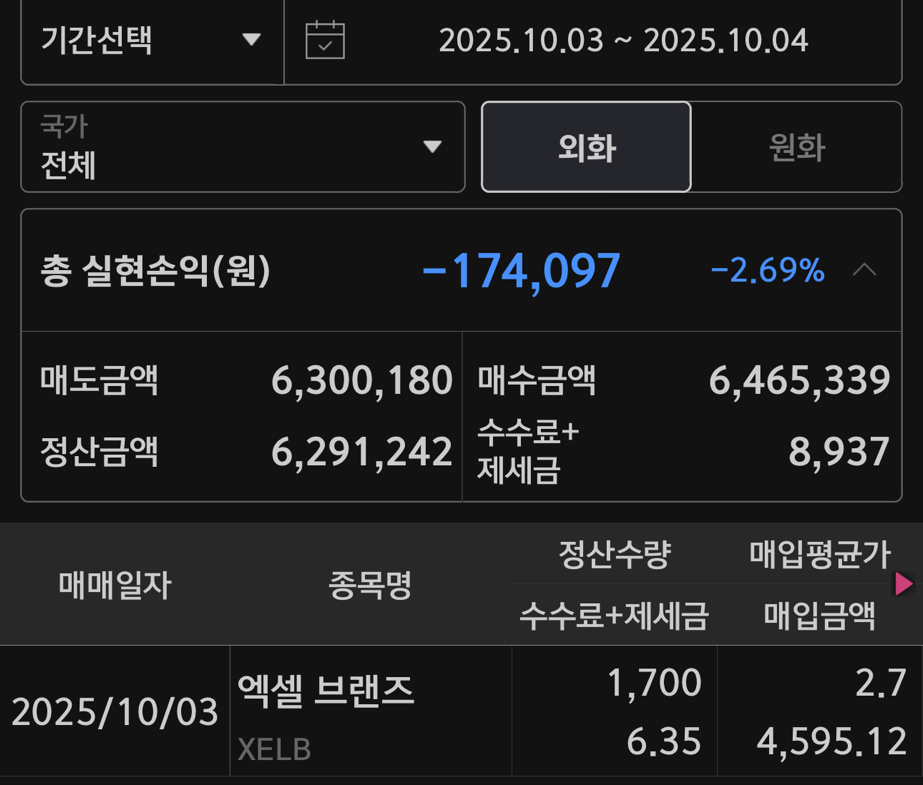 XELB(엑셀 브랜즈)를 애프터장에서 사고팔아서 이미 11만 원을 번 상태였다. 크게 잃지만 않으면 되는 하루였다. 프리장이 시작됐다. 평단보다 높은 금액이 왔지만 약간 더 기다리는 찰나에 가격이 엄청나게 빠졌다.