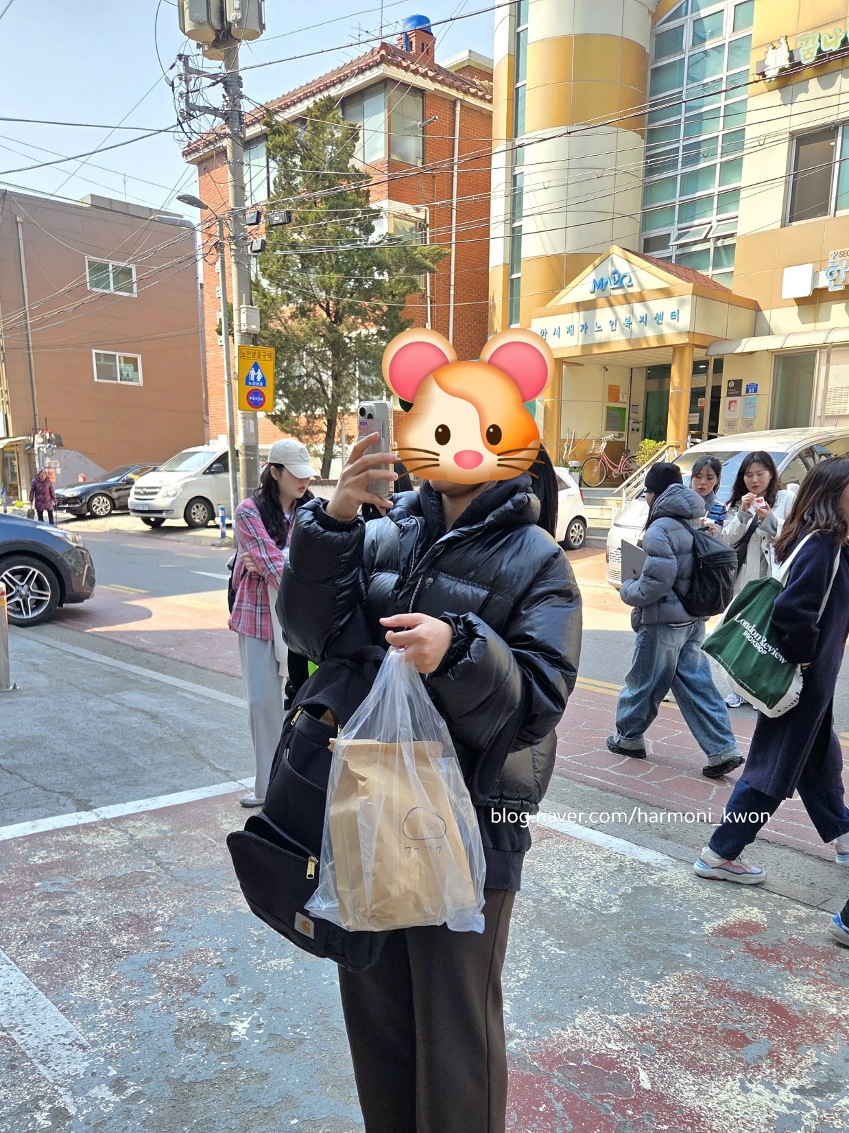 사진에 사람이 늘어선 줄 끝 이층 집이 어글리 베이커리이고, 귀여운 호빵이 그려져 있는 집이 후와후와다. 오늘, 동생은 그 두 빵집을 모두 들러 며칠 동안 다 먹지도 못할 빵을 샀다.