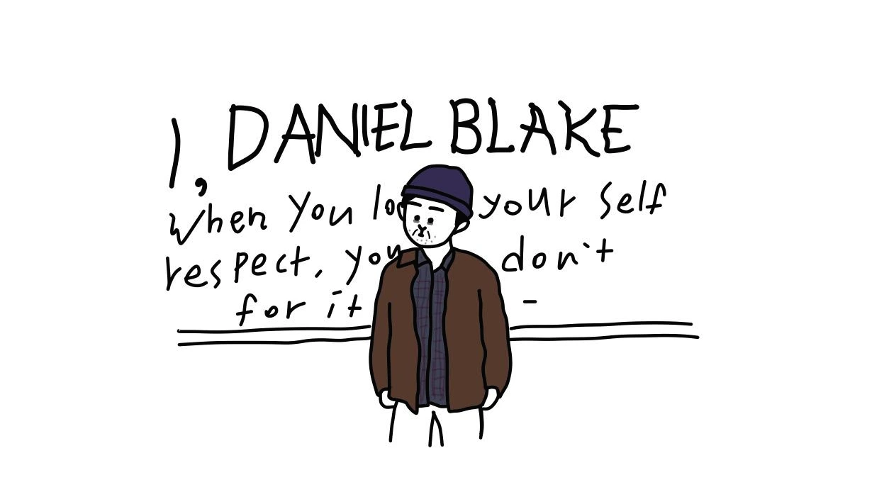 인생의 황혼기에 심장병으로 인해 실업급여를 수령해야만 생활이 가능해진 주인공. 그가 영국의 관료적인 복지 행정 제도와 싸우는 내용을 다룬 켄 로치의 영화 〈나, 다니엘 블레이크(I, Daniel Blake)〉에는 다음과 같은 대사가 나온다.