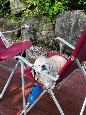 이런저런 생각을 하다 보니 캠핑장에 도착했다. 처음에 노지캠핑을 하자고 한 것은 반려견 해치 때문이다. 예민한 성격이라 아이들을 보고 많이 짖는다. 그럼 조용히 시키는 과정이 스트레스다. 편하게 쉬려고 온 여행이 힘들어진다. 그렇다고 해치를 안 데리고 오면 섭섭하고 미안하다. 더운 여름날씨 때문에 산책도 많이 시키지 못했고 더운 집에서 혼자 있는 날이 많았다. 이번에는 강원도 인제 자작나무 캠핑장을 예약했다. 반려견도 같이 갈 수 있는 캠핑장이다. 요즘 해치는 잘 들리지 않는 것 같다. 현관문 소리에도 나오지 않고 나중에 식구들이 온 것을 안다. 산책길에도 아이들 소리에 잘 짖지 않는다. 철이 든 것인가. 노화인가. 슬프다. 어쨌든 변한 해치의 상황으로 캠핑장 여행이 가능해졌다. 오전 수업만 하고 떠나 오후에 도착했다. 계곡을 앞에 두는 장소는 텐트를 치고 있고 사이를 두고 나무로 만든 데크가 있는 곳은 카라반이 머물 수 있는 곳이다. 새롭게 만난 이웃들은 해치를 벌써 예뻐한다. 앞 데크에는 부부만 캠핑을 왔고, 옆 데크는 부모님, 아이들까지 대가족이다. 대각선의 데크도 반려견이 있다. 둘이 마주치지 않고 조심해야 한다. 꽤 산길을 돌아온 캠핑장인만큼 숲 속의 느낌을 주고 조용하다. 일주일 휴가를 즐기기 위해 목, 금, 토 수업을 두 번이나 해서 무척 바쁜 일주일을 보냈다. 그래서인지 더욱 소중한 여행이라는 생각이 든다. 의자에 앉자마자 행복하다는 말이 절로 나왔다. 배우들 의자처럼 해치 의자라고 이름을 써줘야 할 만큼 해치도 캠핑의자를 무척 좋아한다. 벌써 코를 곤다. 아주 아주 편한 자세로 잠이 들었다 아, 나도 잠깐 눈 좀 붙이자.