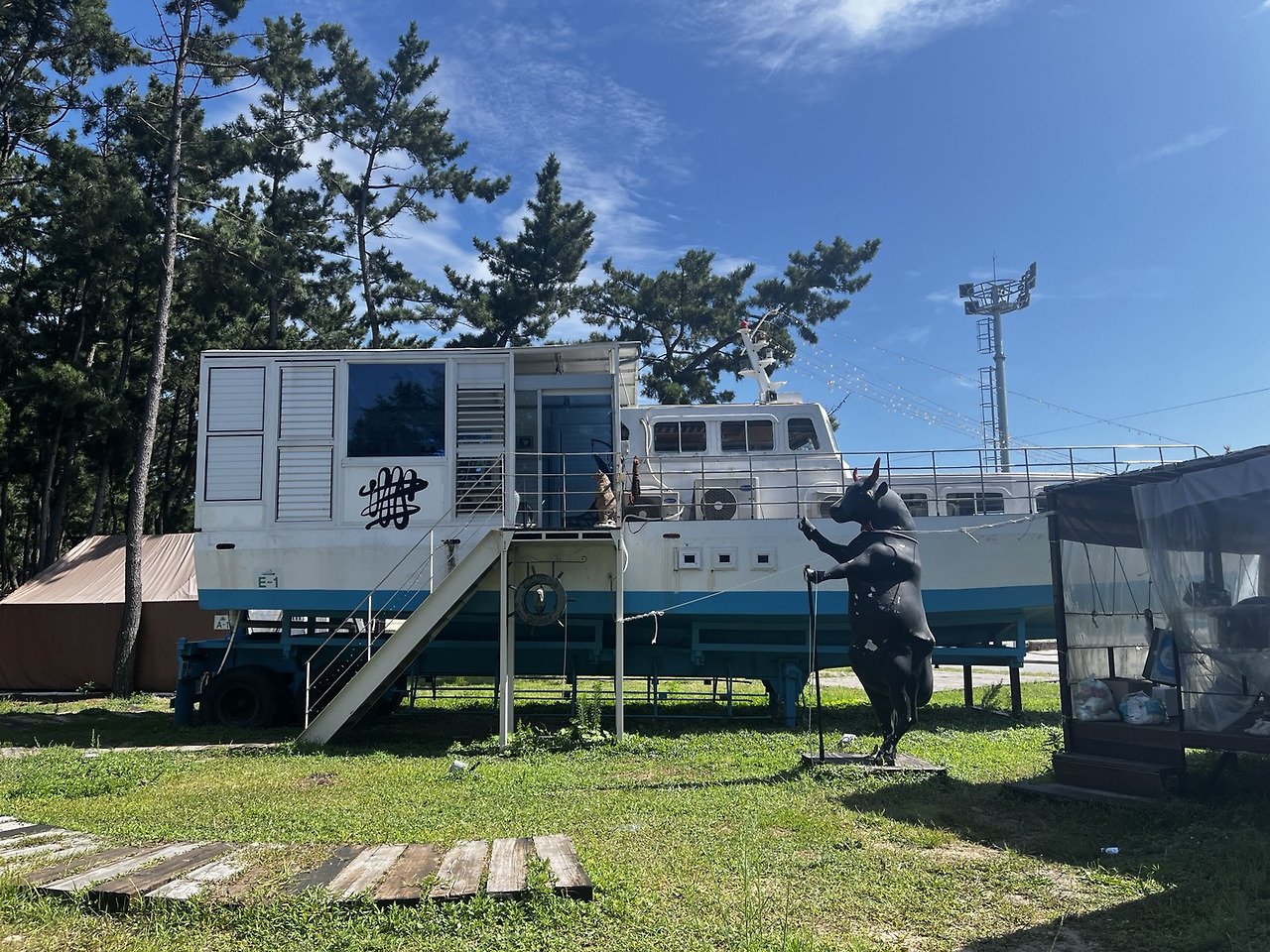바다가 좋아, 계곡이 좋아 질문에 당연히 계곡이지, 바다는 덥기만 해라는 대답을 했다. 바다에 대한 선입견을 가지고 있었다. 일주일 여행을 계곡에만 있을 수는 없다. 이제 강원도를 떠나 바다로 가보기로 했다. 평일이기에 예약을 하지 않아도 자리가 충분히 있을 거라 생각했는데 반려견 동반과 카라반 가능한 캠핑장을 찾기가 어려웠다. 검색 중 울진 구산 해수욕장이 핑클이 캠핑카를 타고 촬영한 곳이라는 사실을 알게 되었다. TV에서 핑클의 캠핑카 여행을 잠깐 본 적이 있다. 많은 사람들이 이 프로그램으로 캠핑카 로망을 갖게 되지 않았을까 싶다. 나 역시 마찬가지이다. 촬영을 할 정도면 괜찮은 곳일 거라는 기대로 일단 가보기로 한다.
