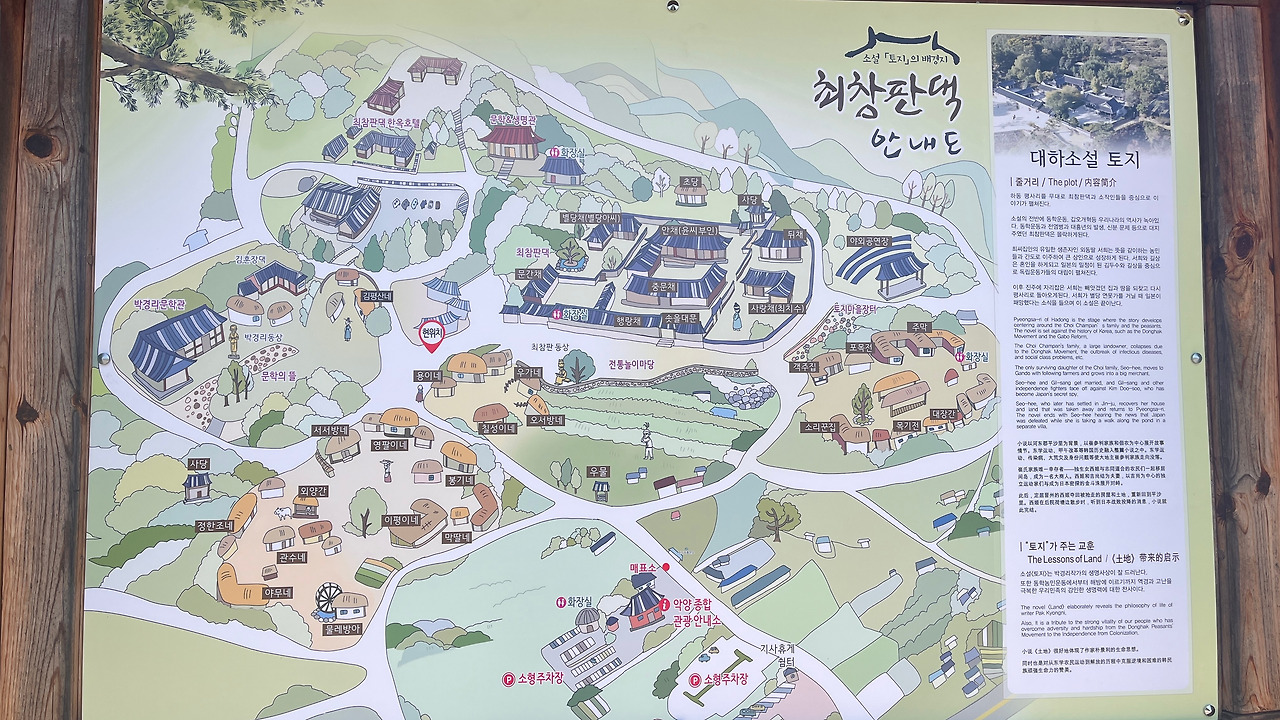 문학관에 가서 감동하기는 이번이 처음인 것 같다. 정확히 말하면 문학관이 아닌 최참판집, 동네, 평사리에 감동했다. 그녀가 왜 평사리를 우연히 와서 토지의 기둥으로 삼았는지 눈으로 보고 몸으로 느끼니 알겠다. 우연이라는 필연, 그렇게 토지가 만들어진 과정이 소름이 끼친다. 이 아름다운 평사리, 열심히 농사하면 수확할 수 있는 황금의 땅을 빼앗긴 서러움을 알겠다. 토지 첫 문장은 강렬했다. 한가위를 맞는 평사리를 묘사하고 있다. 그 속에는 토지가 있다. 토지는 사람이고 생명이었다. 그래서 서러웠고 위대했다. 나는 권민호 화가가 그린 인물도를 보고 마치 가족을 보는 듯 반가웠다. 실제로 존재한 듯한 우리들의 선조들이다. 작가가 탈고한지 30년 후 지금 토지를 읽고 있어 나는 행복하다.