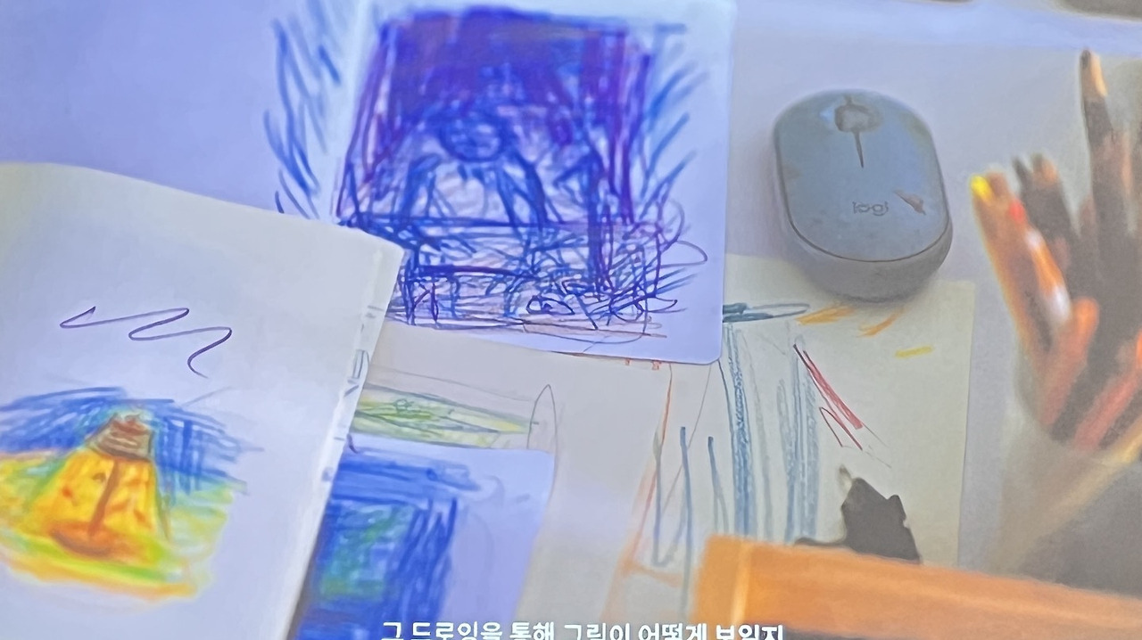 2층에는 작가의 인터뷰 영상이 있다. 기초적인 드로잉을 통해 모든 작품을 완성하는 과정을 거친다는 말이 가장 인상 깊었다. 우리는 예술가들은 갑자기 떠오르는 영감과 천재적인 재능을 이용해 쉽게 작품을 만든다고 생각한다. 예술가들의 말을 들으면 그들은 엄청난 노력을 하고 디테일한 작업을 거친다. 나는 그녀의 과정을 보여주는 드로잉 그림이 가장 기억에 남았다. 그리고 자신만이 가지고 유일한 것으로 예술로 승화할 수 있다는 단순하면서도 중요한 사실을 깨달았다.