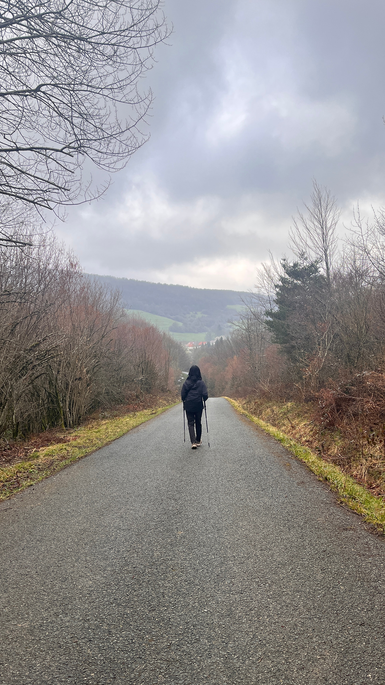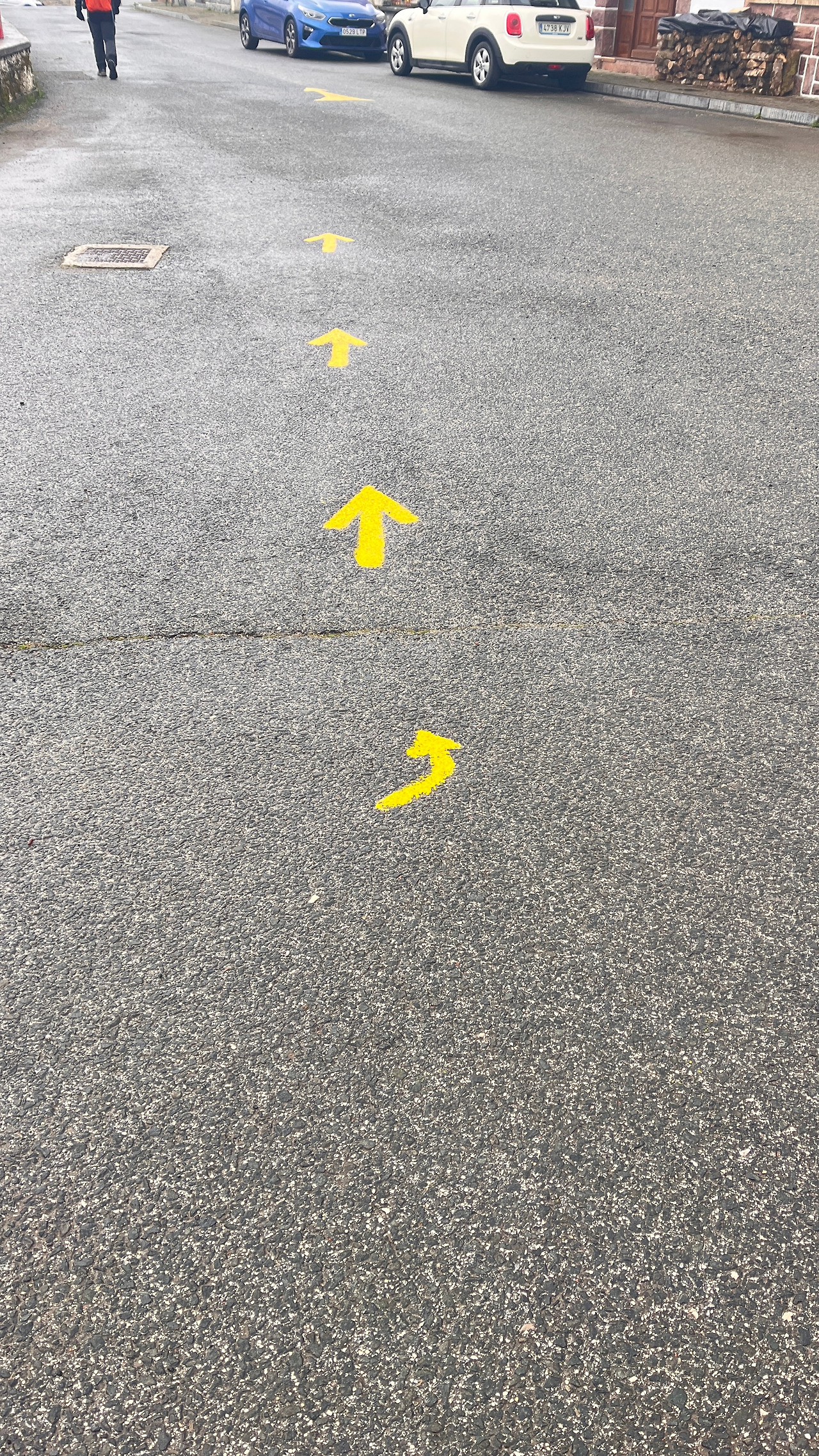 새벽 2시에 자꾸 눈이 떠진다. 한국 시간 6시인가 보다. 론세스바예스 알베르게는 규모가 커서 순례자들이 많았다. 다들 들떴는지 좀 늦게 잔다. 나는 짐을 줄이기 위해 책을 가져오지 않고 사진 찍고 다운로드하였는데 외국인들은 밤늦게까지 종이책을 읽는다. 슬로 라이프를 사는 게 느껴진다. 나도 종이책이 그립다. 눈을 뜨면 한강 시를 읽는다. 그리고 한국 정치 뉴스를 보며 침대에서 뒹굴뒹굴한다. 잠이 오지 않는다. 6시에 일어나서 짐을 정리하고 또 반복적으로 발을 살핀다. 7시에 아침식사를 하는데 어제 커뮤니티 식사를 한 사람들이 다시 모였다. 한국은 이렇게 오래 여행하는 게 쉽지 않은데 너희들은 어때 물어보니 독일은 6주 휴가를 쓸 수 있다고 한다. 부럽다. 학생 같아 보이는 네덜란드인은 과학자라고 한다. “물고기는 존재하지 않는다” 책을 읽어봤냐고 물어보니 너중에 꼭 읽겠다며 사진을 찍는다. 전 세계 베스트셀러는 아닌가 보다. 암튼 공통점이 생겼다. 식사 후 한국인 수정 씨와 같이 출발했다. 결혼하기 전 마지막 여행이라고 생각하고 왔다고 한다. 혼자 여행을 즐기는 무척 독립적인 분이다. 이런저런 얘기를 하니 시간이 금방 갔다. 거기에다 어제보다 순탄한 길이고 비도 오지 않는 럭키한 날이다. 카페에서 커피 한 잔을 하고 이제는 각자 속도로 걷기로 했다. 수비리 가는 길은 내리막이 어렵다. 나는 오르막보다 내리막이 더 조심스럽다. 나 혼자 나를 책임져야 하니 더욱 조심하게 된다. 남편은 2시간이라도 연락이 없으면 난리를 친다. 수정 씨랑 걷다 보니 카톡 하는 걸 깜빡했다. 아이들이 어렸을 때 나는 제주도 한 달 살기를 했다. 남편 혼자 있을 때 나도 아침 모닝 전화로 깨우기도 하고 반찬도 만들고 왔었다. 지금은 셋이 같이 있으니 나는 걱정을 안 한다. 딸이 앤서니 브라운의 “돼지책”처럼 집이 될까 봐 가족회의까지 열었다. 딸이 집에 있어 걱정이 없다.그렌데 나 혼자 있으니 남편은 걱정이 되나 보다. 입장이 바뀌었다. 수정 씨는 결혼을 해야 하나 고민스럽다고 한다. 둘이 같이 무언가를 이루는 것이 결혼생활이라고 얘기해 주었다. 별 얘기 다 하게 된다. 단 하루 만에 몸이 적응을 했나, 아님 힘든 하루는 모든 걸 쉽게 만드나, 암튼 오늘은 어제보다 힘들지 않았다. 아, 또 행복하다