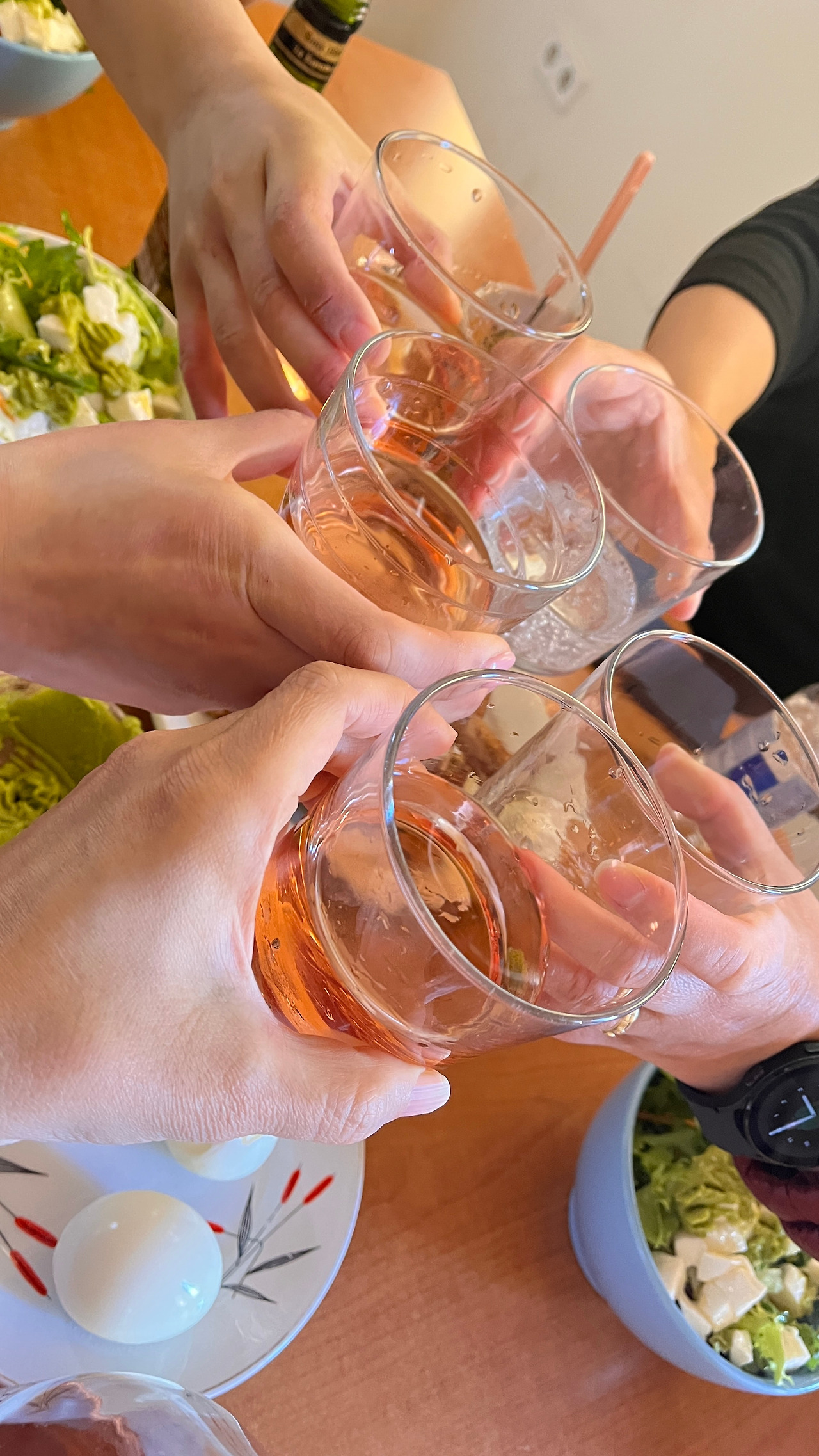나는 내일도 걷는다. 우리는 기쁜 소식에 축배를 들었다.
