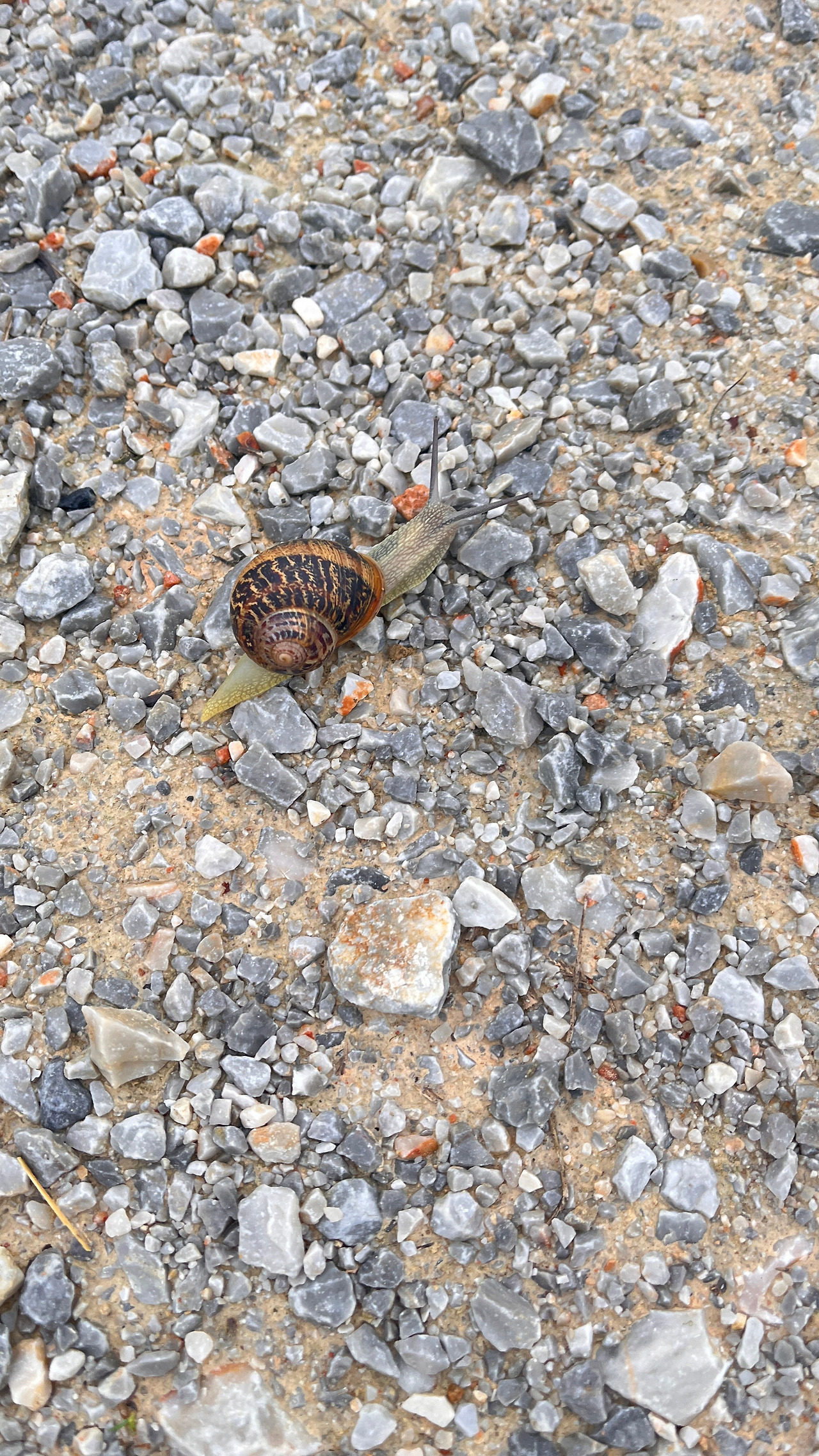 어제 날이 흐리고 저녁에 비가 왔다. 바닥에는 역대급으로 달팽이들이 많이 나와있다. 달팽이 주의보다. 만약 모르고 달팽이를 밟는다면 윽, 그 찝찝한 죄책감을 어쩔 것이냐. 스틱도 쓰지 않고 바닥만 보고 걷고 있다. 달팽이의 기다란 몸은 연두색과 황토색이 섞여있다. 가지고 다니는 집은 생각보다 작다. 마치 우리의 배낭 같다. 몸을 길게 빼고 느리게 느리게 육지의 수분을 흡수하는 것일까. 논, 밭에 있는 달팽이라서 연두색이 보호색인 것일까. 색이 참 예쁘다. 찰칵